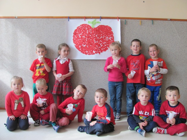W oddziale przedszkolnym 3 i 4 - latków w dniu 7 października 2014 r. obchodzono „Dzień pomidorka”. W tym dniu dzieci ubrane były w różne odcienie koloru czerwonego. Celem tego dnia było zachęcenie dzieci do spożywania warzyw szczególnie pomidora jako wartości odżywczej zawierającej mnóstwo witamin. Rozmawiano o zdrowym odżywianiu się i wartości spożywania warzyw. Zadaniem dzieci było wykonanie wspólnej wydzieranki „pomidora”. Na zakończenie każde dziecko próbowało sałatki i soku pomidorowego.