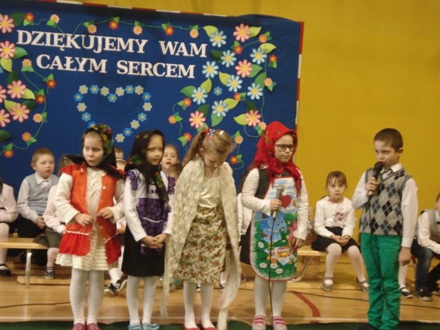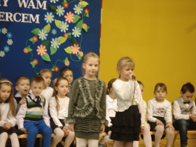 W SP w Mokronosie, oprócz przedszkolaków, swe słowa uznania dla dziadków i babć skierowali również uczniowie klas pierwszych. Klasa IB takie spotkanie zorganizowała w dniu 05.02.br. Na zaproszenie dzieci odpowiedziało ponad 50 seniorów. Obejrzeli oni montaż słowno - muzyczno - taneczny pt. "Dziękujemy Wam całym sercem...". Program artystyczny wzbudził zachwyt zebranych, o czym świadczyły gromkie brawa i słowa pochwały. Dostojni goście obdarowani zostali przez wnuczęta własnoręcznie wykonanymi kwiatkami. Serdeczne życzenia: zdrowia, pogody ducha i nieustającej miłości najbliższych, złożyli gościom Dyrektor szkoły, p. J. Baszczyński oraz wych. klasy IB - B. Kukfisz.