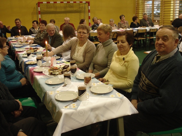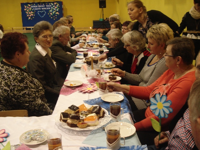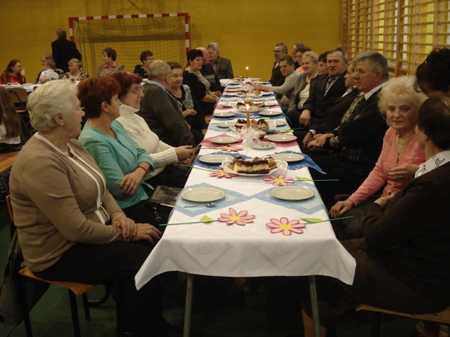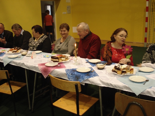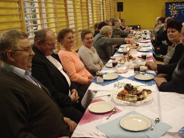 Po części oficjalnej goście zaproszeni zostali na poczęstunek przygotowany przez rodziców. Przy kawie i słodkim "co nieco", z muzyką lat siedemdziesiątych w tle, seniorzy toczyli długie i ożywione dyskusje.