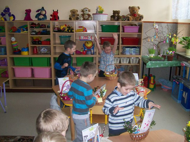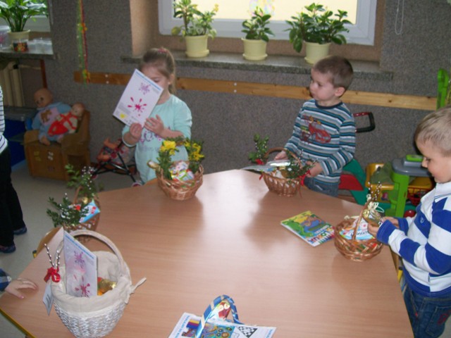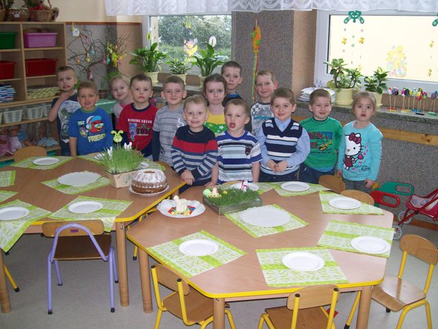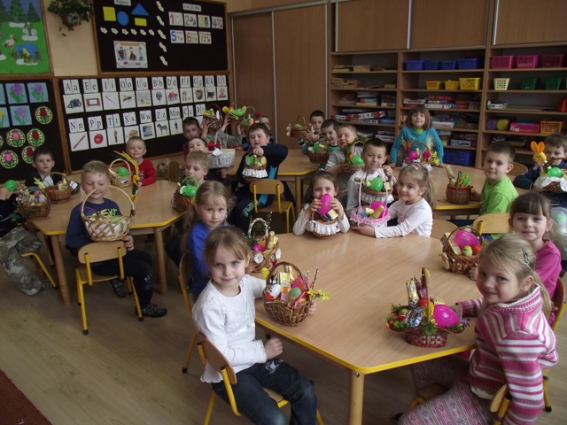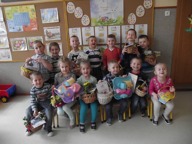 Mimo braku wiosennej pogody Zajączek Wielkanocny, tuż przed przerwą świąteczną dotarł do dzieci z oddziałów przedszkolnych. Przyniósł mnóstwo upominków, słodyczy i zapełnił nimi przygotowane, pięknie przystrojone wcześniej koszyczki. Radości nie było końca! Grupa najmłodsza wraz z wychowawczynią przygotowała zielony, wielkanocny kącik i zajadała świąteczną babkę, upieczoną przez jedną z mam. Choć wyczekiwany był od samego rana, Wielkanocny Gość jak zwykle zaskoczył przedszkolaków i miejmy nadzieję, że za rok również odwiedzi nasze przedszkole.