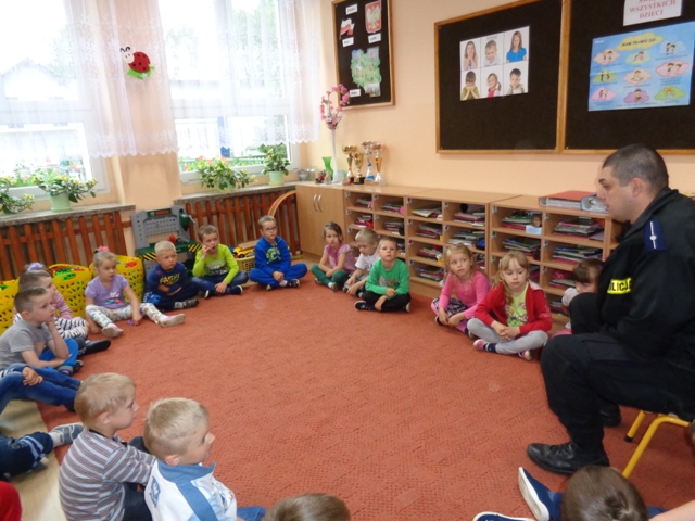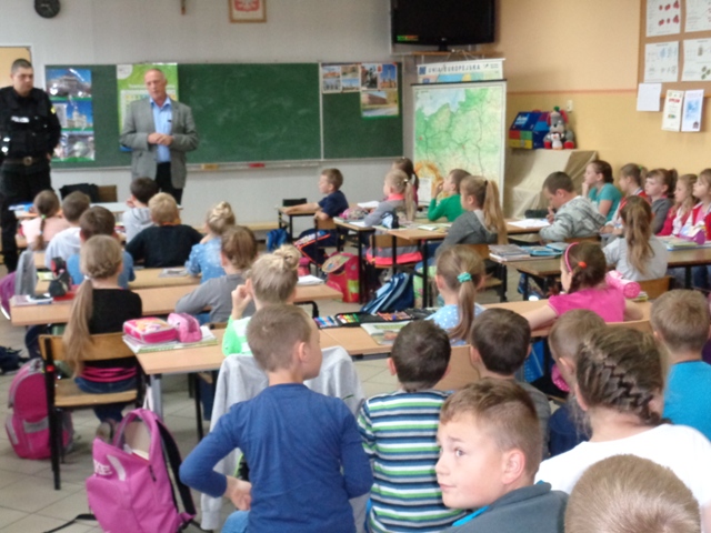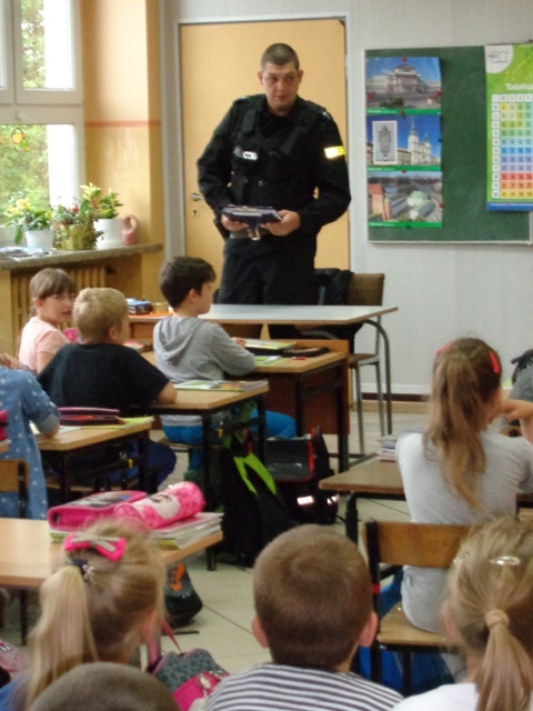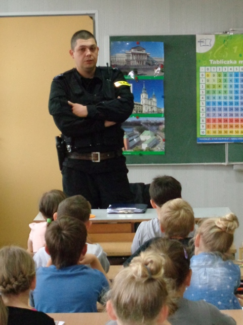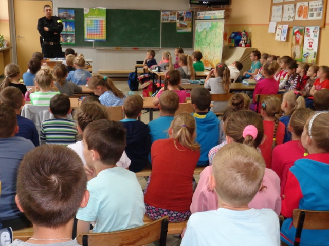 9 czerwca br. naszą szkołe odwiedził pan policjant, dzielnicowy mł.asp. Dawid Klarzyński. Spotkanie odbyło się z dziećmi z oddziału "0" oraz uczniami klas I-III. Pan policjant przypomniał wszystkim jak ważne jest zachowanie bezpieczeństwa na drodze i podczas prac w gospodarstwie rolnym w okresie wakacji. Zaznaczył także, że należy zachować szczególną ostrożność w kontaktach z nieznajomymi. Na koniec życzył wszystkim bezpiecznych i słonecznych wakacji.
