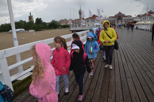 W dniu 19 czerwca 2015 roku klasa I A wraz z wychowawcą i dwoma opiekunkami wyjechała na dwudniową wycieczkę nad morze. Trasa wycieczki wiodła poprzez Toruń, Malbork, Gdańsk do Sopotu. Dwudniowy pobyt nad morzem można zawdzięczyć szczęśliwemu kuponowi Magdaleny Kryś, który został wylosowany w konkursie „Piątka dla gazety! Konkurs dla dobrych uczniów.” Dla całej klasy była to niezwykła niespodzianka. O godzinie 6.00 klasa I a wyruszała w nieznaną trasę. Pełni emocji i wrażeń dotarli do Torunia. Zwiedzili Starówkę i Wały Obronne. Pokonali 174 schody wchodząc na wieżę widokową ratusza, aby podziwiać panoramę miasta. Był to niezwykły wyczyn dla bardzo młodych turystów. Trzy słowa kojarzące się dzieciom z Toruniem to „ gotyk, piernik i Kopernik”. Udział w warsztatach wypieków toruńskich pierników sprawił wiele przyjemności. Poznając miasto Mikołaja Kopernika, uczniowie następnie dotarli do Malborka siedziby zakonu krzyżackiego. Historia dzieciom nieznana, ale wrażenia i wspomnienia odżyją w późniejszych latach. Po wyjeździe z Malborka dzieci dotarły na miejsce zakwaterowania, gdzie po obiadokolacji i zakwaterowaniu nastąpiła upragniona i wyczekiwana chwila powitania z morzem. Radość zabawy nad morzem, zbieranie muszelek i szukanie bursztynów nie da się wyrazić słowami. Na plaży nastąpiła piękna chwila, kiedy koleżanki i koledzy podziękowali koleżance Madzi za wspaniałą wycieczkę, wręczając skromny upominek. W drugim dniu zwiedzały Gdańsk. Dzieci poznały najważniejsze zabytki tego miasta. Po rejsie statkiem dotarły na Westerplatte. Po Gdańsku nadszedł czas na Sopot i upragniony spacer po molo. Tutaj pogoda nie dopisała. Choć w strugach deszczu, uczniowie odważnie spacerowali po najstarszym drewnianym molo. Po południu nadszedł czas powrotu. Zmęczeni ale szczęśliwi i pełni emocji wycieczkowicze wrócili do domu sobotnim wieczorem.