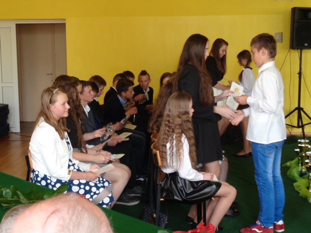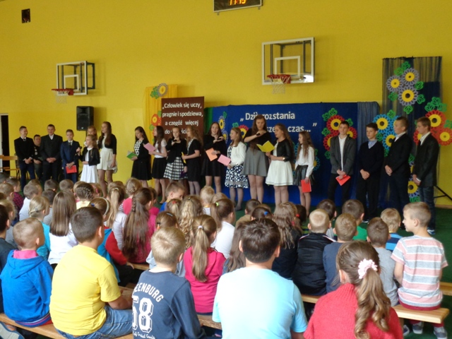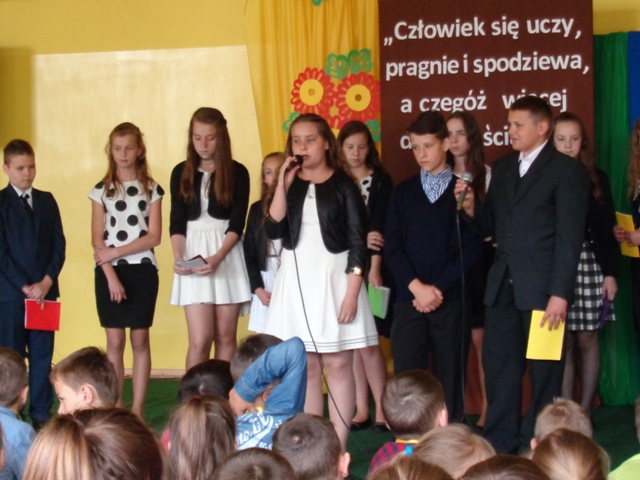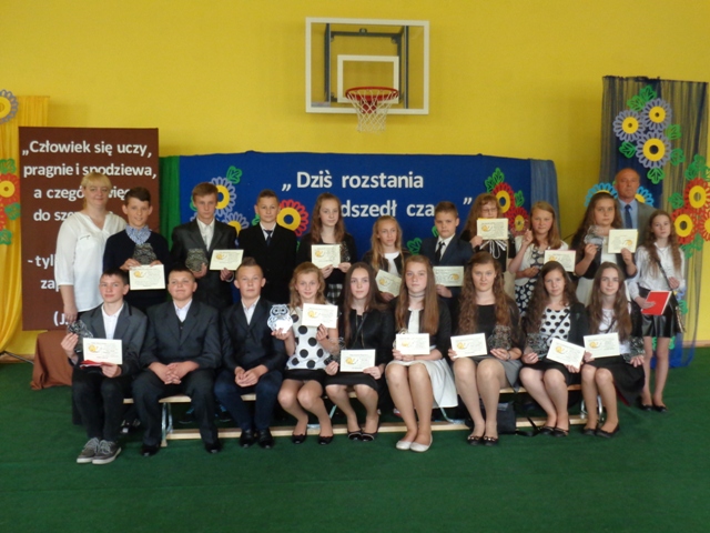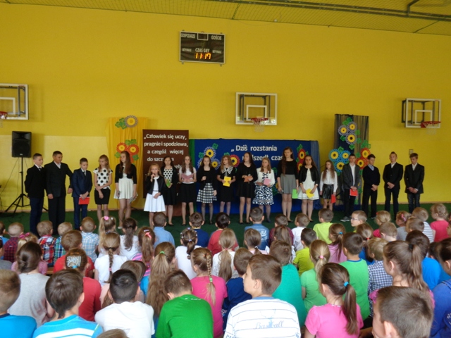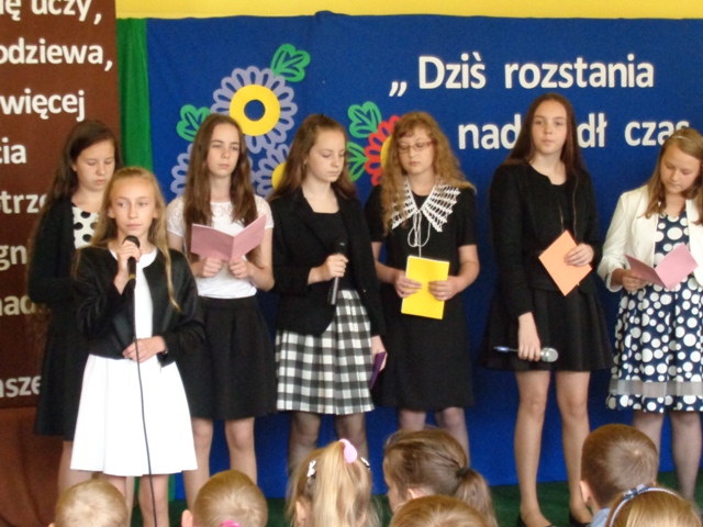 Tradycją w naszej szkole stało się, że w czwartek, tuż przed zakończeniem roku szkolnego uczniowie klasy VI żegnają się ze szkołą podstawową. Szóstoklasiści zostają absolwentami i opuszczają mury ukochanej "podstawówki" by od września rozpocząć naukę w gimnazjum. w tym roku szkolnym dziewiętnastu uczniów klasy VI przystąpiło do sprawdzianu szóstoklasisty i ukończyło szkołę podstawową. Uroczysta akademia przepełniona była wspomnieniami z lat najmłodszych i podziękowaniami za trud włożony w kształcenie i wychowanie. Klasa V żegnając swoich starszych kolegów przygotowała dla nich miłe upominki i w imieniu wszystkich uczniów, życzyła powodzenia w dalszych latach nauki w gimnazjum.