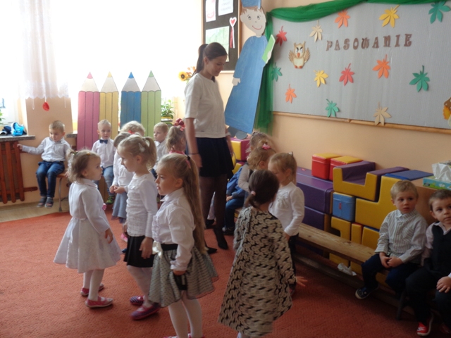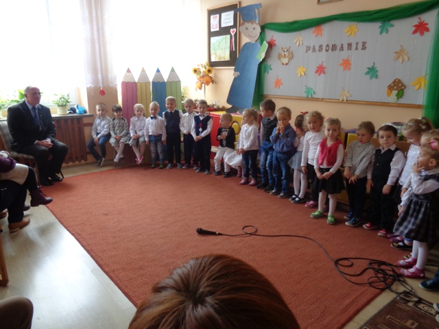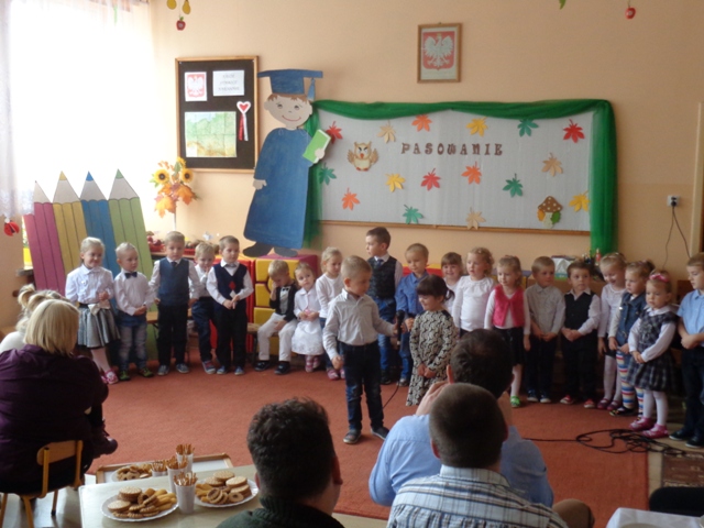 Dnia 26 października br. dzieci z oddziału przedszkolnego w Mokronosie oficjalnie wstąpiły do braci uczniowskiej naszej szkoły. Od samego rana panowała radosna atmosfera, dzieci odświętnie ubrane czekały na najważniejszy moment w życiu przedszkolnym. O godzinie 11 przybyli zaproszeni goście: rodzice i Pan Dyrektor. Grupa przedszkolna na początku zaprezentowała swój dotychczasowy dorobek artystyczny, zdobyty w przedszkolu. Dziewczynki zatańczyły i wspólnie z chłopcami zaśpiewały i recytowały wiersze. Następnie Pan Dyrektor - magicznym lizakiem - pasował każde dziecko na przedszkolaka i wręczał dyplomy. Na zakończenie tak ważnej uroczystości odbył się wspólny słodki poczęstunek, przygotowany przez niezawodne mamy.