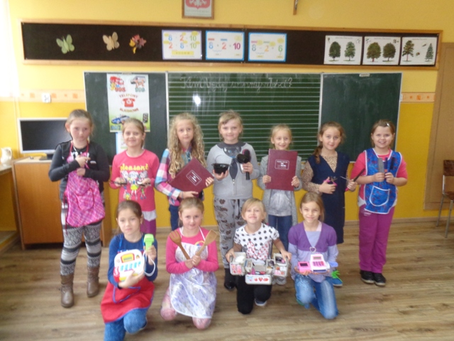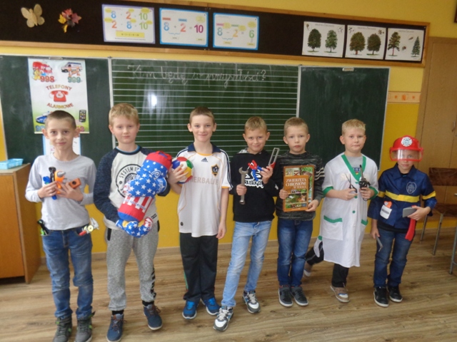 W październiku uczniowie klasy IIA na zajęciach poznawali różne zawody. Z wielkim zaangażowaniem podeszli do zagadnienia. Przynieśli stroje wraz z atrybutami związanymi z danym zawodem. Bardzo ładnie prezentowali zawody, które chcieliby w przyszłości wykoanywać. Wykazali się dużą wiedzą na temat charakterystyki wielu specjalności zawodowych.