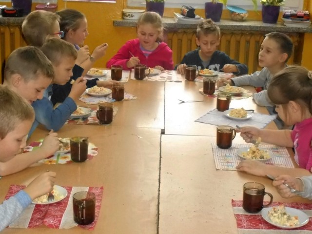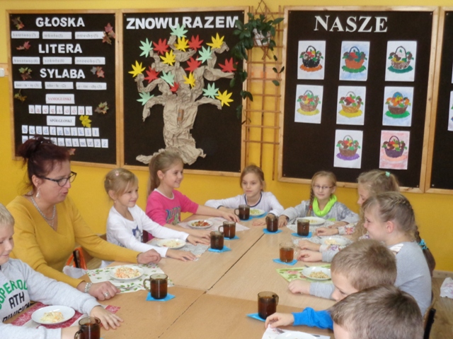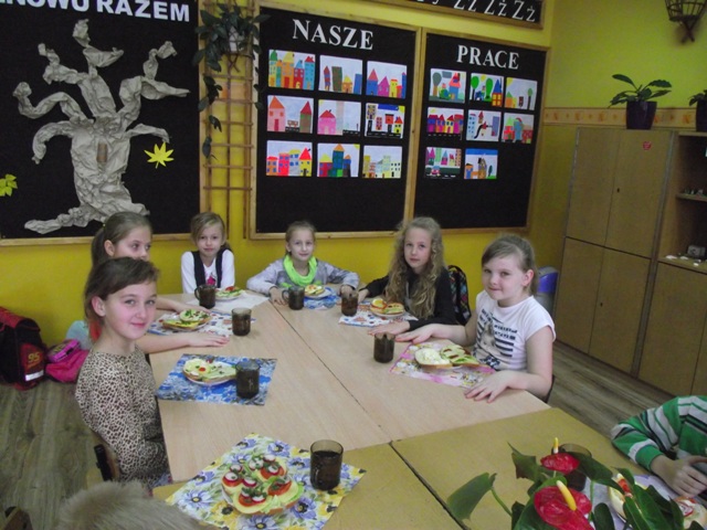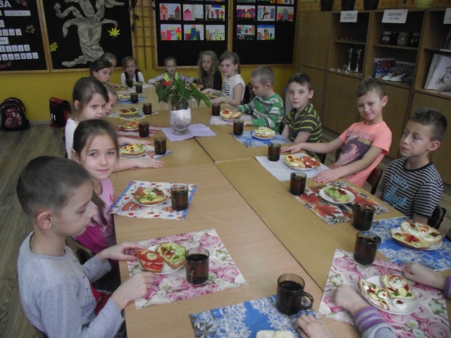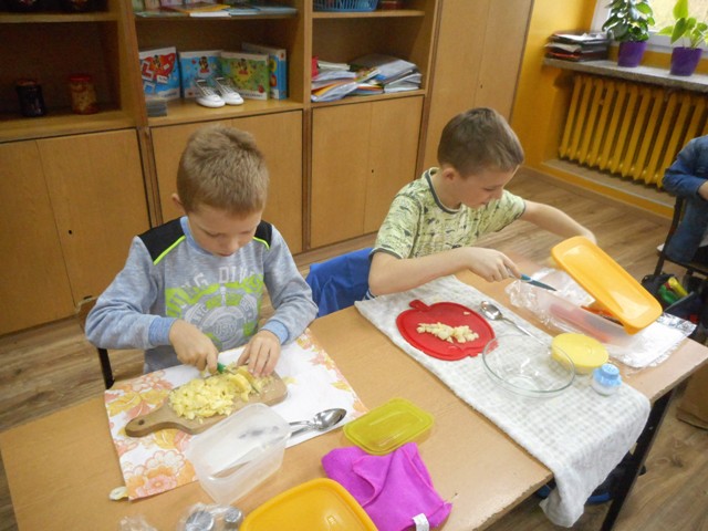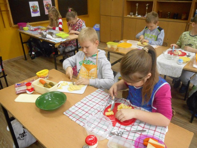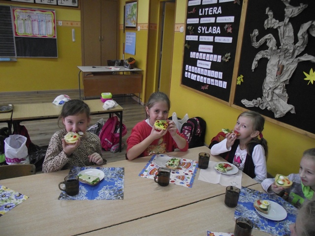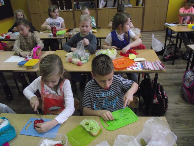 Jesienią uczniowie klasy IIA, w ramach programów profilaktycznych, przygotowywali smaczne i zdrowe posiłki. Na stołach drugoklasistów często gościły warzywne sałatki i kolorowe kanapki. Była to doskonała okazja do przypomnienia sobie zasad zdrowego odżywiania, a także tego jak witaminy i wartości odżywcze wpływają na dobre samopoczucie człowieka.