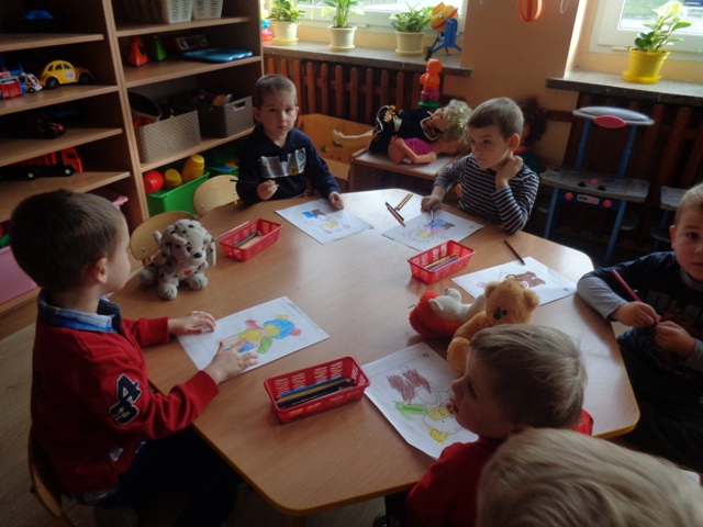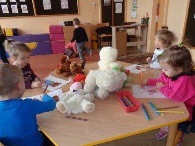Ponadto cała grupa wykonała prace plastyczną w postaci kolorowanki misia. A na koniec dnia każde dziecko wykonało Niedźwiadka z kolorowego papieru. A do domu zabraliśmy wszyscy sporą dawkę dobrego humoru.