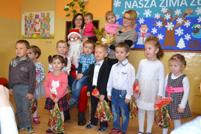18 grudnia br. w Przedszkolu we Wrotkowie od samego rana panowała podniosła, świąteczna atmosfera. Przedszkolaki wraz ze swoimi rodzicami oraz zaproszonymi maluchami z naszej wsi spotkali się na wspólnej Gwiazdce. Spotkanie opłatkowe rozpoczęło się świątecznym przedstawieniem przygotowanym przez przedszkolaków. Dzieci zaprezentowały wiersze oraz piosenki o tematyce świątecznej. Wspólnie z rodzicami śpiewaliśmy kolędy. Po części artystycznej przyszedł czas na wizytę Św. Mikołaja, który zawitał w przedszkolne progi i wszystkim dzieciom przyniósł prezenty.Tego dnia nie zabrakło również świątecznych życzeń, dzielenia się opłatkiem czy udziału w przepysznej słodkiej uczcie przygotowanej wspólnie z rodzicami. Dzień upłynął w bardzo miłej atmosferze.