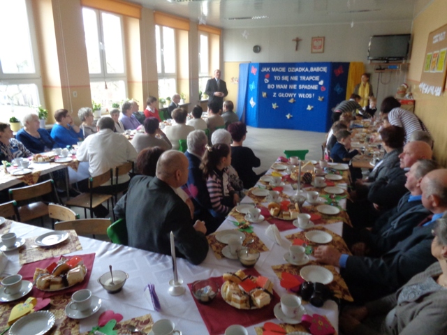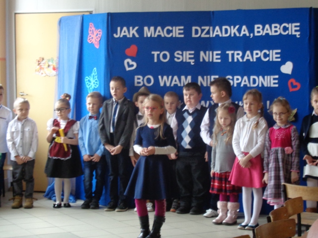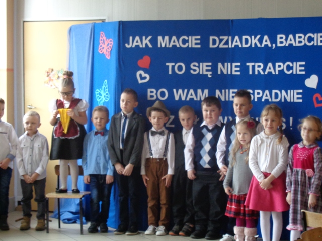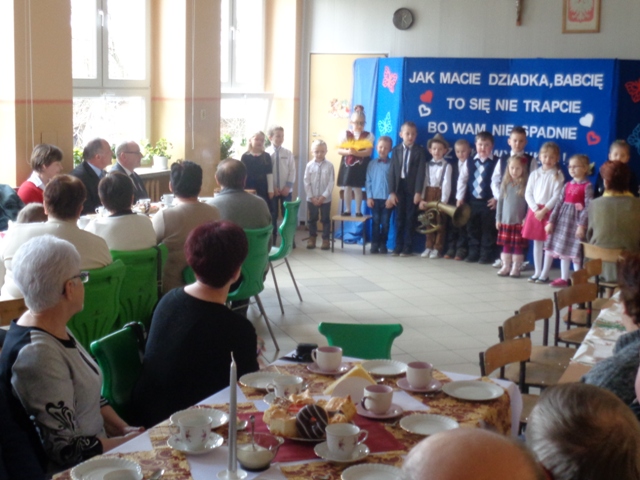 26 stycznia br. uczniowie klasy IB zaprosili swoje ukochane Babcie i wspaniałych Dziadków na uroczystość z okazji Ich święta. Akademię rozpoczęła wychowawczyni pani Halina Wielebska serdecznie witając dostojnych gości, w tym Dyrektora Szkoły, Burmistrza MiGM Koźmin Wlkp. pana Macieja Bratborskiego oraz panią Kierownik RO - Irenę Serek. Wychowawczyni zwróciła szczególną uwagę na nieocenioną rolę babć i dziadków w życiu każdego dziecka, podziękowała za ich miłość i wsparcie w wychowywaniu młodych pokoleń. Następnie dzieci przedstawiły swój program artystyczny - były wspaniałe wiersze, piosenki, życzenia i słodkie upominki dla kochanych seniorów. Na twarzach gości można było zauważyć radość i wzruszenie. Na ręce szanownych Dziadków najserdeczniejsze życzenia złożyli Dyrektor Szkoły - Janusz Baszczyński i Burmistrz MiGm Koźmin Wlkp.- Maciej Bratborski. Po zakończeniu części artystycznej dzieci zaprosiły wszystkich na słodki poczęstunek przy kawie, o który zadbały niezawodne mamy.