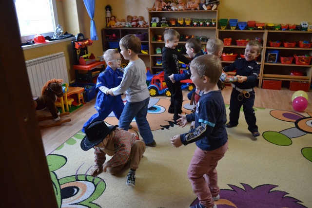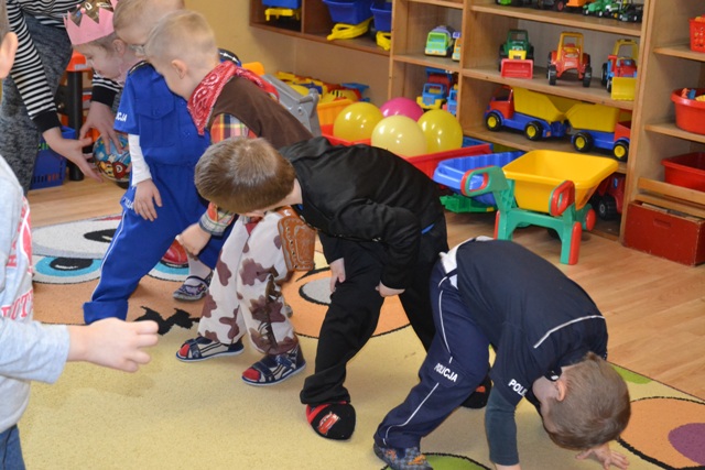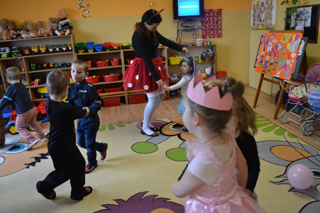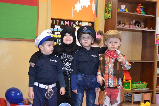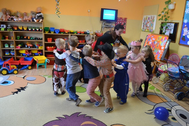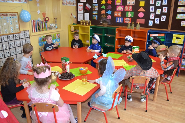 Na specjalnym balu w Naszym przedszkolu dzieciaki miały okazje by wspólnie potańczyć, pośpiewać i wziąć udział w przygotowanych konkursach i zabawach. Nie obyło się również bez słodkiego poczęstunku. Była to też wyjątkowa okazja dla dzieci i nie tylko, by na jeden dzień przeistoczyć się w wymarzone postacie bajkowe. Znalazły się wśród nich wróżki, księżniczki, ninja, kowboje, a nad naszym bezpieczeństwem czuwało aż trzech policjantów i jeden strażak. Wszyscy wyglądali wprost bajecznie.