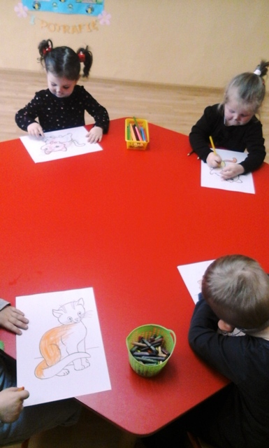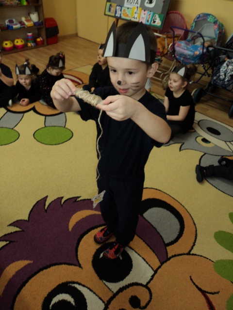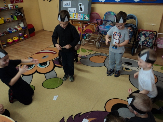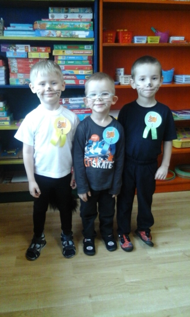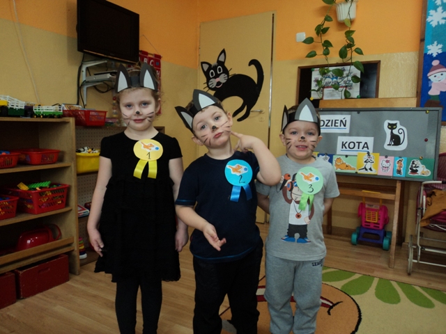 Dzieci wysłuchały opowiadania o chorym kotku, później uczyły się w jaki sposób opiekować się tymi zwierzętami, oglądały książeczki, zapoznawały się z kocimi obyczajami oraz sposobami pielęgnacji kotów. Były też wesołe „kocie zabawy”, takie jak: koci spacerek czy zabawa w „Kotka i myszkę”. W tym dniu dzieci kolorowały swoje wymarzone kotki i wykonały również przestrzenne postacie kotów z papieru, które zdobią teraz przedszkolną wystawkę. Dzieci brały również udział w „kocich konkursach”, na zwijanie kłębka wełny i najszybsze wypicie mleczka. Dzieci, które zwyciężyły zostały obdarowane odpowiednimi medalami, a na koniec dnia każde dziecko otrzymało medal „Kociego przyjaciela”.