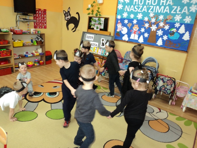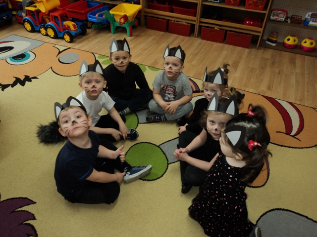 Dzieci z przedszkola we Wrotkowie obchodziły 19 lutego br. nietypowe święto „Dzień Kota”. W tym dniu wszystkie przedszkolaki upodobniły się do swoich czworonożnych przyjaciół, przyszły ubrane w ciemnych kolorach, założyły przygotowane wcześniej kocie uszka, a pani dorysowała im wąsy.