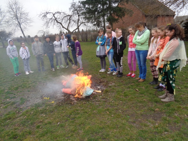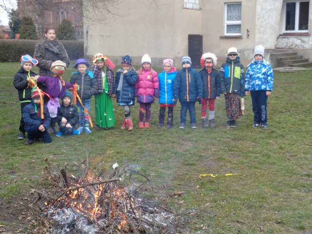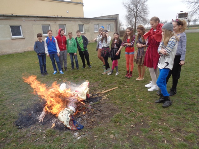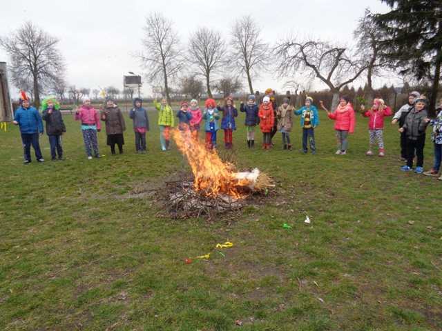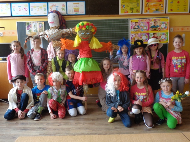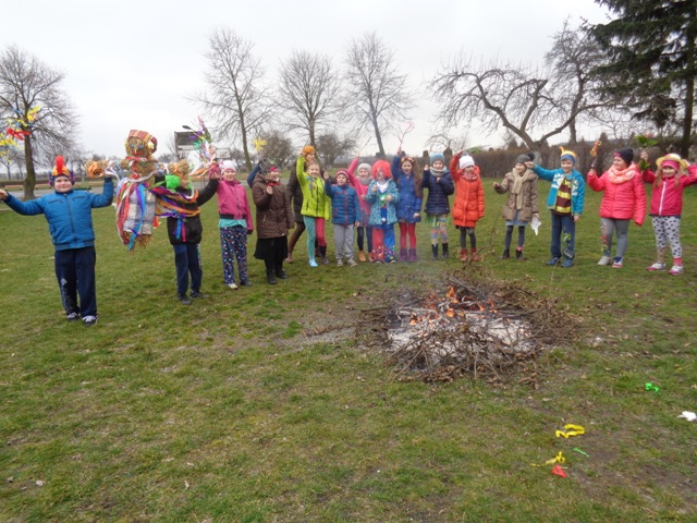 21 marca br. uczniowie naszej szkoły oficjalnie pożegnali zimę i powitali nadchodzącą wiosnę! Tego dnia wszyscy przebrani byli w barwne stroje lub mieli na sobie ubrania w kolorach wiosny. Każda klasa przygotowała "Marzannę", którą następnie pożegnała wspólnym śpiewem przy ognisku, definitywnie odpędzając zimę. Rada Rodziców zadbała o poczęstunek dla wszystkich - kiełbaski z grilla. Dzień upłynął w miłej i wesołej atmosferze.