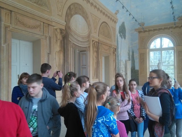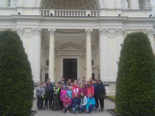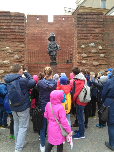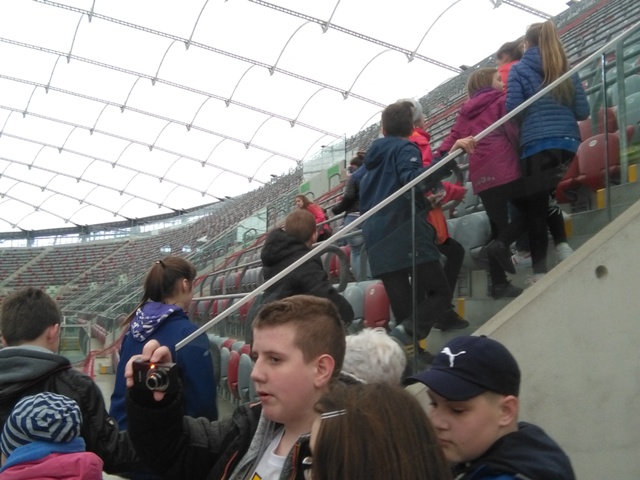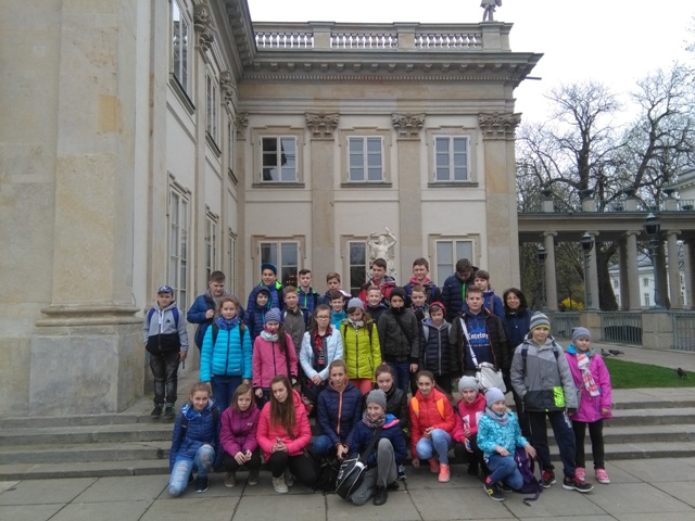 Następnie wielu z nas ciekawością obejrzało wnętrze Stadionu Narodowego. Wywarł na nas spore wrażenie. Kolejno udaliśmy się do Centrum Nauki Kopernika. Jego zadaniem jest zachęcanie do osobistego zaangażowania w poznanie i zrozumienie świata oraz do wzięcia odpowiedzialności za zmiany zachodzące wokół nas. W centrum znajduje się pierwszy na świecie teatr, w którym grają roboty. Celem Teatru Robotycznego jest prezentacja istotnych tematów z różnych dziedzin nauk ścisłych i humanistycznych w sposób angażujący emocje, a przez to łatwiejszy do przyswojenia. Niektórzy z nas obejrzeli przedstawienie pt. „Ojciec wie najlepiej” zrealizowane na podstawie baśni H. Andersena. Drugiego dnia wyprawy wzięliśmy udział w warsztatach teatralno-muzealnych przeprowadzonych w Teatrze Królewskim w Łazienkach. Został on otwarty przez ostatniego króla Polski Stanisława Augusta Poniatowskiego, wielkiego mecenasa sztuki i nauki. Być może król Staś chciał nas tam zatrzymać na dłużej, bo jedna z grup warsztatowych zatrzasnęła się w dawnej garderobie aktorów. Na szczęście dobre duchy teatru czuwały nad nimi i prędko zostali uwolnieni. Wieczorem natomiast mieliśmy niewątpliwa przyjemność uczestniczyć w przedstawieniu kabaretowo-muzycznym przywołującym klimat przedwojennej Warszawy. Błyskotliwe żarty i anegdoty, wesołe oraz nostalgiczne piosenki przeniosły nas w tamten świat. Spektakl nosił tytuł ,,Dla mnie bomba”, a można go oglądać w słynnym Teatrze Żydowskim przy Placu Grzybowskim.