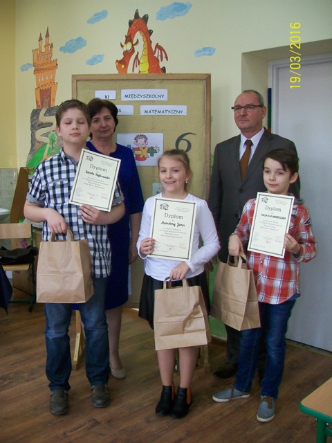 Jak co roku Szkoła Podstawowa Nr 3 w Koźminie Wlkp. zorganizowała VI Międzyszkolny Konkurs Matematyczny dla klas trzecich "Mały Mistrz Matematyki". Na jej zaproszenie, w dniu 19.04 br. naszych trzecioklasistów reprezentowała Marcelina Jarus. Proadziła sobie świetnie i zajęła zaszczytne II miejsce. Gratulujemy!