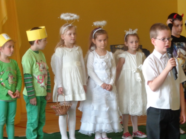 Ciekawe przebrania i charakteryzacja uczniów, pogodna, wiosenna scenografia zrobiły duże wrażenie na publiczności, czego dowodem były gromkie brawa oraz serdeczne podziękowania.