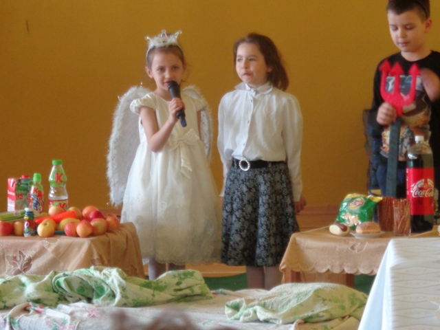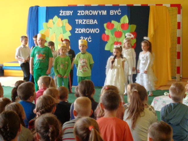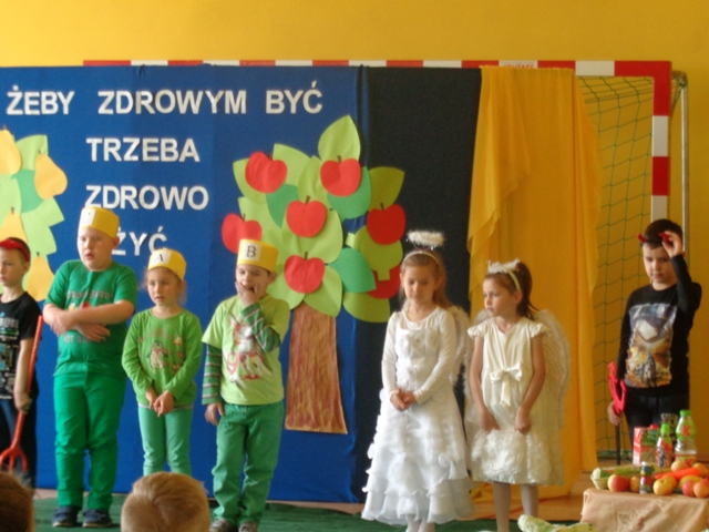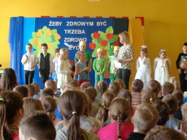 W dniu 5 maja br. w naszej szkole odbyło się przedstawienie profilaktyczne dla społeczności uczniowskiej pod tytułem „Żeby zdrowym być trzeba zdrowo żyć”. Wśród zaproszonej publiczności znaleźli się także rodzice pierwszaków, pan dyrektor oraz nauczyciele i pracownicy naszej szkoły.