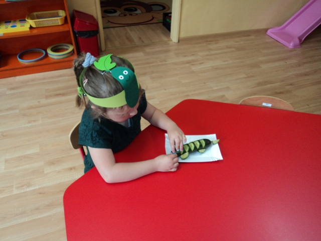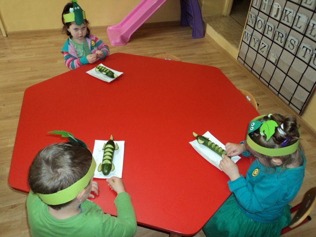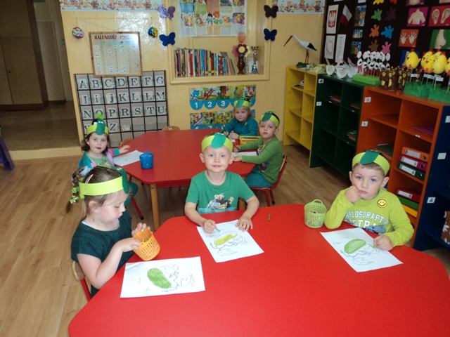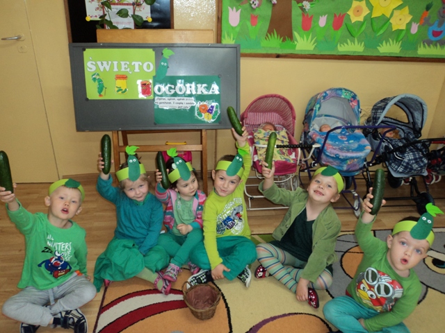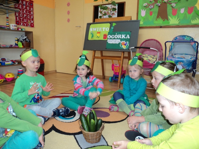 Zadaniem dzieci w tym dniu było opisanie wyglądu ogórka. Dzieci wymieniały również potrawy, które można przyrządzić z ogórka. Okazało się, że przedszkolaki doskonale poradziły sobie z tym zadaniem. Następnie uczyły się piosenki o ogórku wąsatym i wzięły udział w zabawach tanecznych. Odbyły się zawody z konkurencjami, w których podstawą było użycie ogórków oraz rozmaite zabawy z ogórkiem w roli głównej.