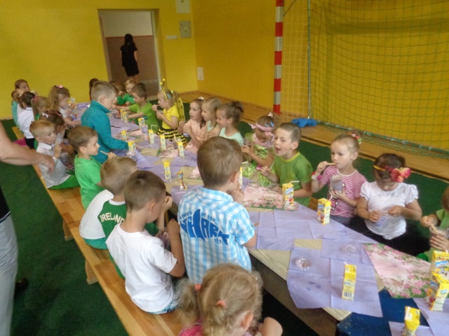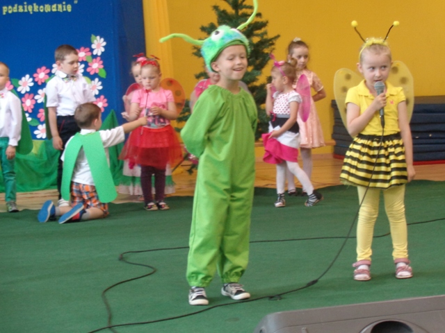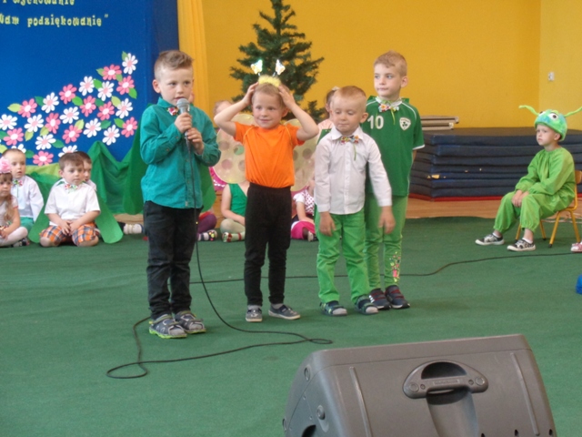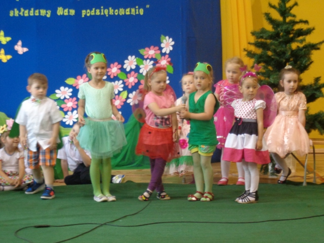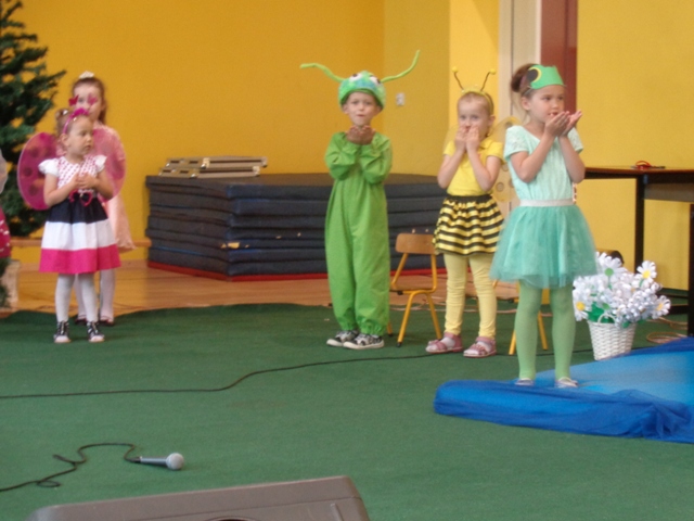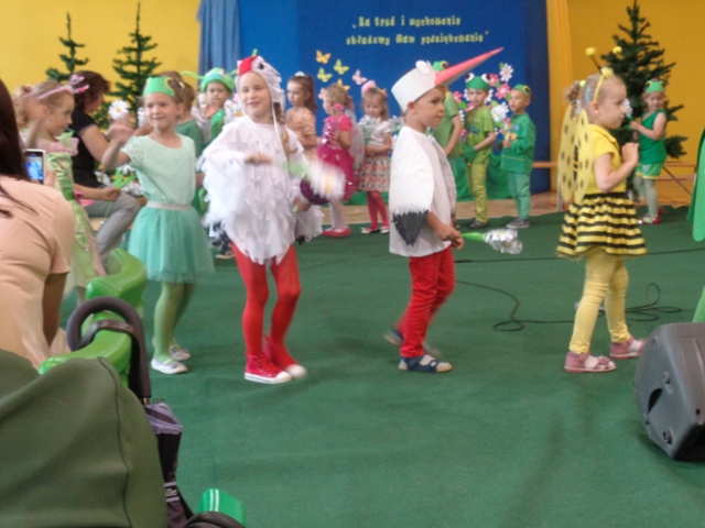 Dnia 31.05.2016 r. do oddziałów przedszkolnych na zaproszenie dzieci przybyli ich rodzice. Oddział "O" przywitał zaproszonych gości tańcem aranżowanym muzyką Johanna Straussa. Po krótkim wstępie wychowawczyni oddziału "O" powitała rodziców ciepłymi słowami i zachęciła do obejrzenia przedstawienia pt. "Dziwny przyjaciel". Pan Dyrektor również powitał wyszystkich gości wspierając słowem małych artystów. Dzieci wcieliły się w role zwierząt żyjących na łące można było zobaczyć tam: Panią bocianową, bociana, żabki, koniki polne, pszczółki, motyle, wróżki i kwiatowe dziewczynki. Rodzice z dużym zainteresowaniem wysłuchali problemów małego bociana i wierszy dedykowanych szczególnie dla nich. Każde dziecko wręczyło swoim rodzicom kwiatki na dowód ich miłośći i wdzięczności. W ten burzowy dzień były chwile wzruszenia i zadowolenia z wystepów małych artystów. Na koniec rodzice gościli sie przy kawie i deserach lodowych przygotowanych przez niezawodne mamy.