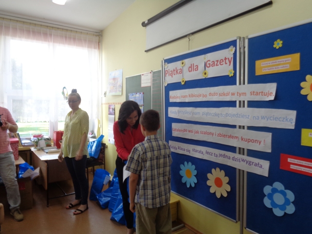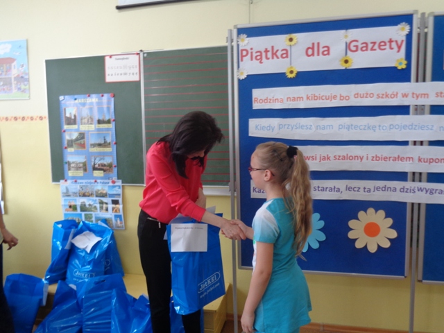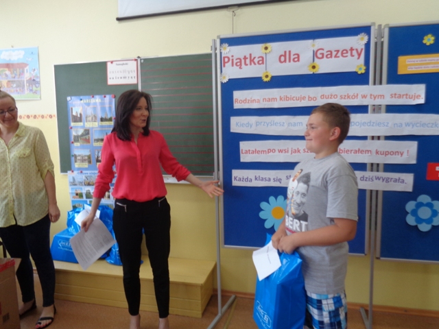 Uczniowie naszej szkoły w kolejnej edycji konkursu "Piątka dla Gazety" brali bardzo aktywny udział. Nagrody za największą ilość kuponów odebrali Sebastian Sobański, Wioletta Kąkolewska oraz Adam Klawiński z klasy III. Podczas finałowego losowania kuponów, szczęście po raz kolejny dopisało naszej szkole,wylosowano szczęśliwy kupon Tobiasza Karolczaka z klasy Ib, co oznacza, że Tobiasz oraz cała klasa Ib już wkrótce wyruszy na wycieczkę nad morze wraz z Gazetą Krotoszyńską.