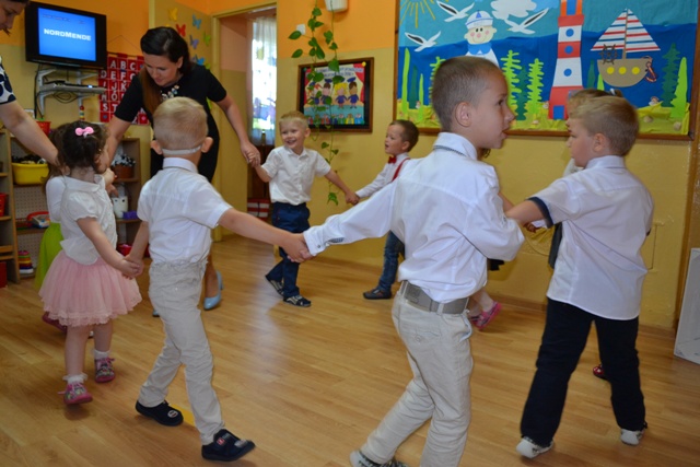 Dzieci długo przygotowywały się do tego święta, aby wszystko było idealnie. Przedszkolaki pięknie recytowały wiersze i śpiewały piosenki, które były skierowane do Rodziców. Następnie dzieci wcieliły się w role mieszkańców łąki i zaprezentowały wszystkim inscenizacje, pt. „Przygoda niegrzecznej żabki”. Rodzice okazali się niezawodni i przygotowali piękne stroje swoim pociechom. Po inscenizacji przyszedł czas na specjalny układ choreograficzny i pozostałą część artystyczną. Były także upominki dla rodziców oraz dyplomy i upominki dla Przedszkolaków.