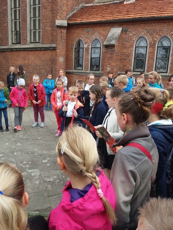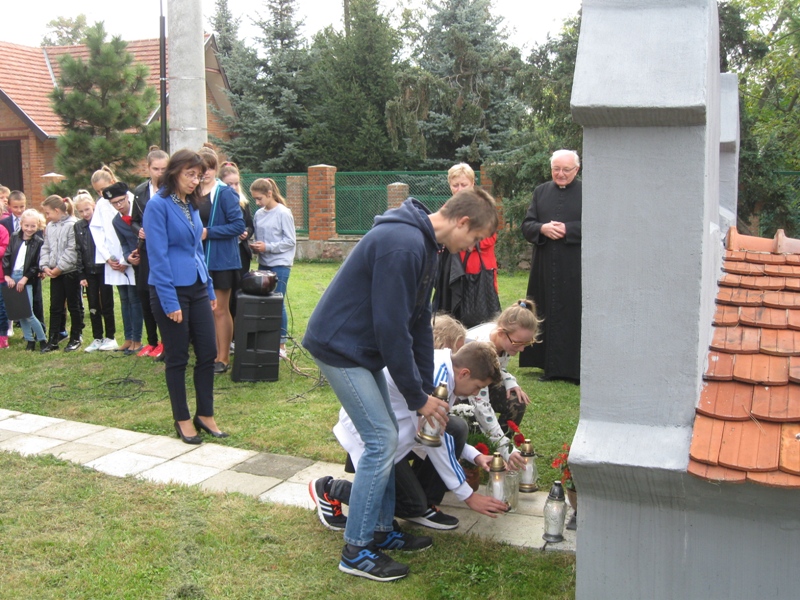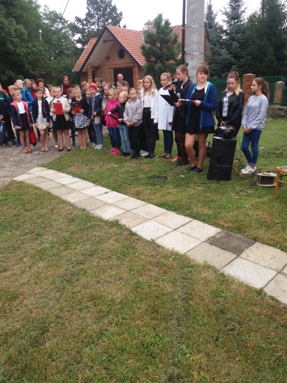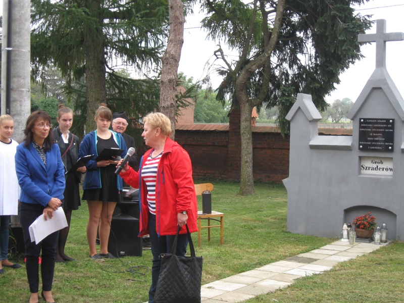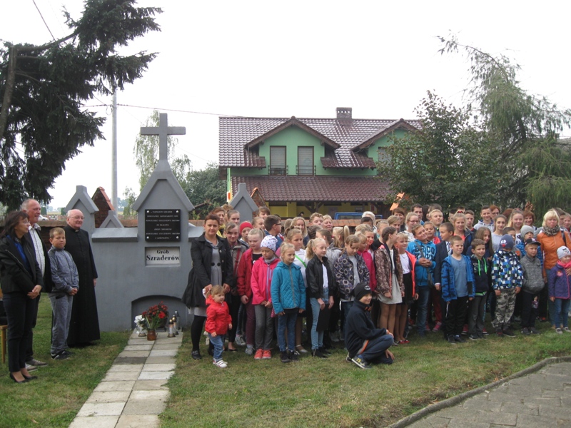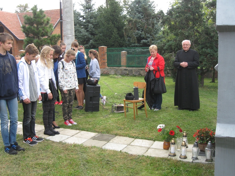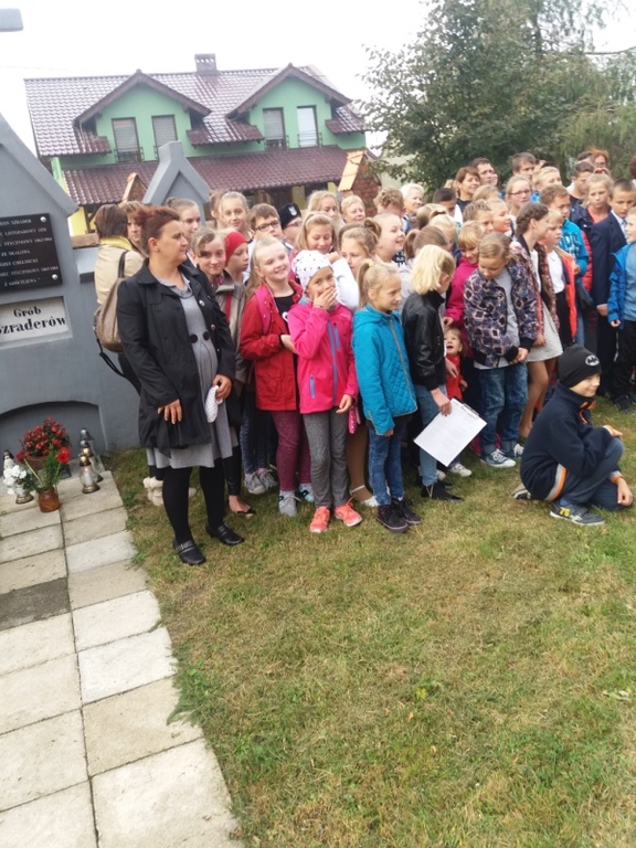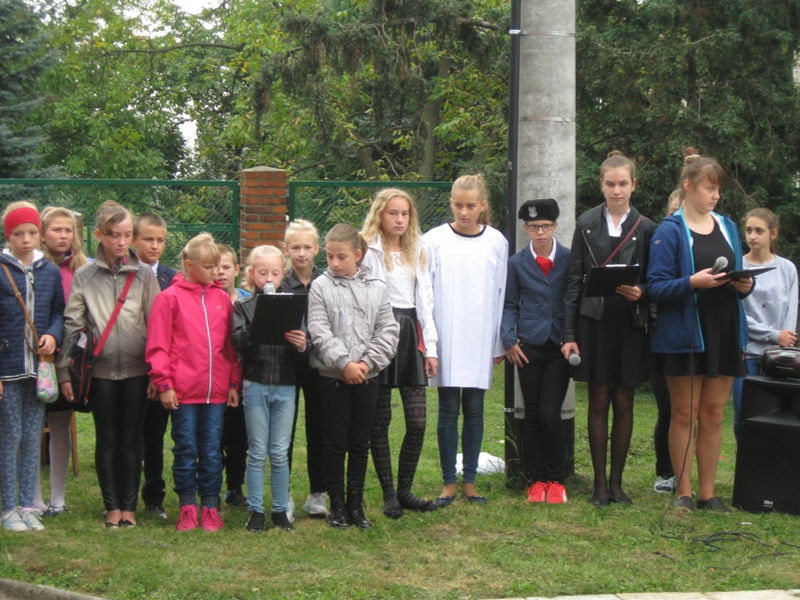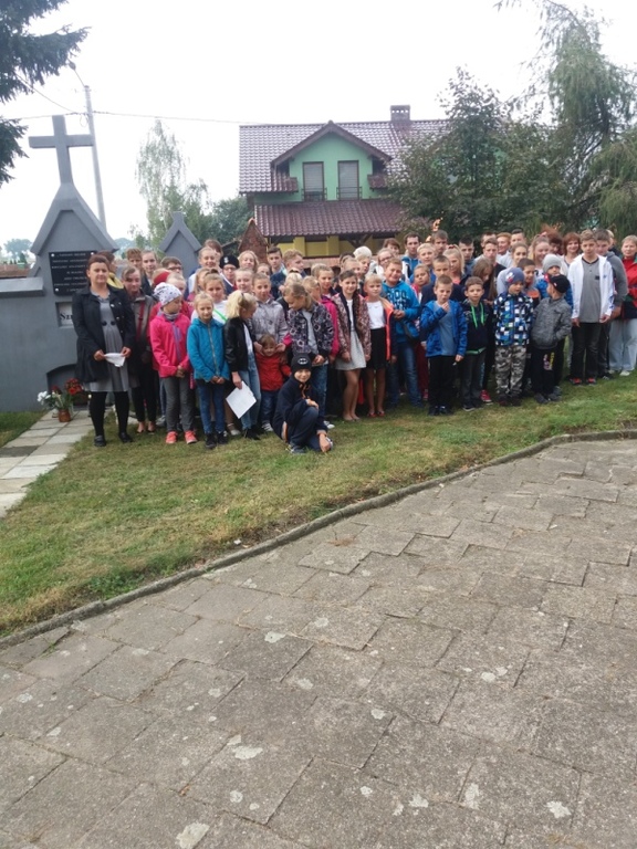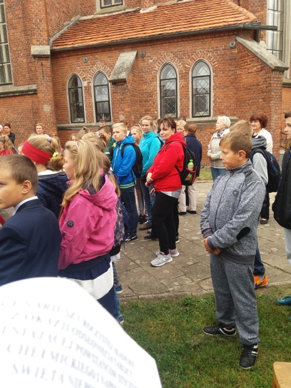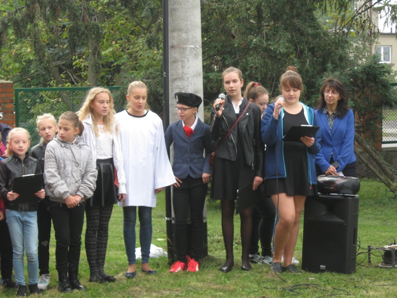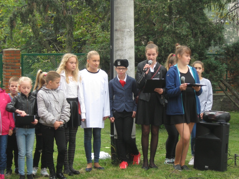 O godz. 10:00 uczniowie, nauczyciele, dyrekcja, ksiądz kanonik spotkali się z uczestnikami rajdu (młodzieżą i ich opiekunami ze szkół gminy Koźmin Wlkp.) przed tablicą upamiętniającą powstańców styczniowych : Napoleona Szradera i Józefa Chełmickiego.