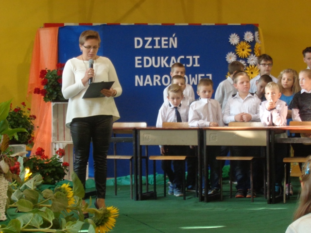 Dzień Edukacji Narodowej czyli popularny "Dzień Nauczyciela" to święto obchodzone 14 października w rocznicę powstania Komisji Edukacji Narodowej w 1773 roku. Tradycyjnie z tej okazji w naszej szkole odbyła się uroczysta akademia. W ramach podziękowania nauczycielom za ich trud włożony w edukację i wychowanie, uczniowie złożyli im podziękowania i życzenia oraz wręczyli kwiaty. Pan Dyrektor Janusz Baszczyński podziękował nauczycielom i wszystkim pracownikom naszej szkoły za pracę na jej rzecz oraz dbałość o jej wizerunek oraz złożył najserdeczniejsze życzenia. Życzenia dla kadry pedagogicznej i pracowników szkoły złożyła także przewodnicząca Rady Rodziców pani Aurelia Karolczak.