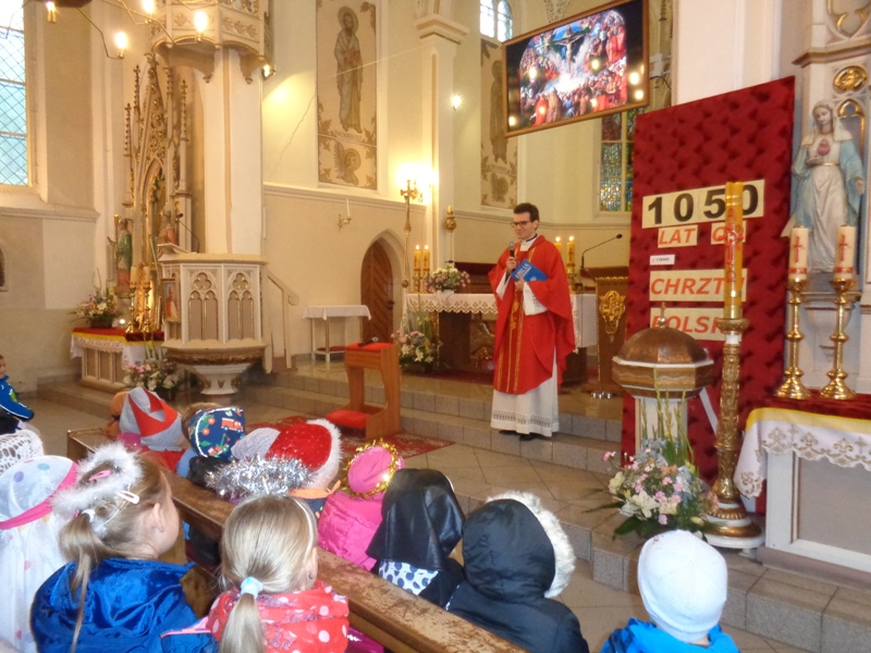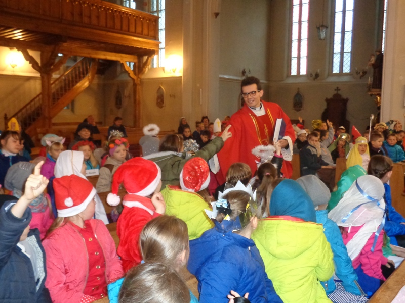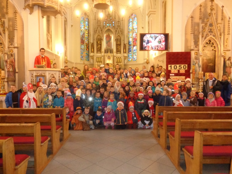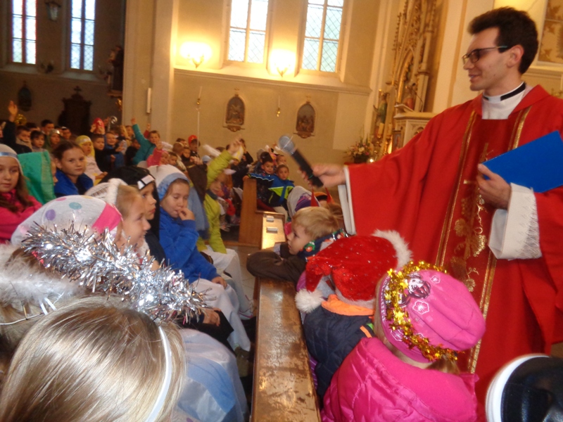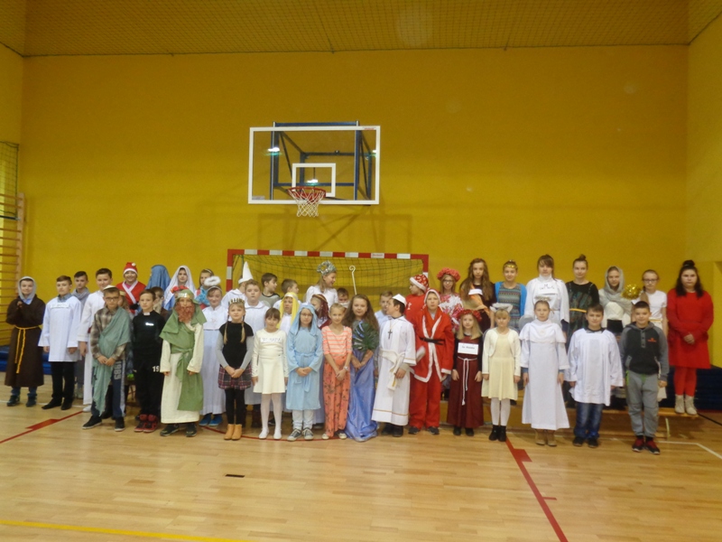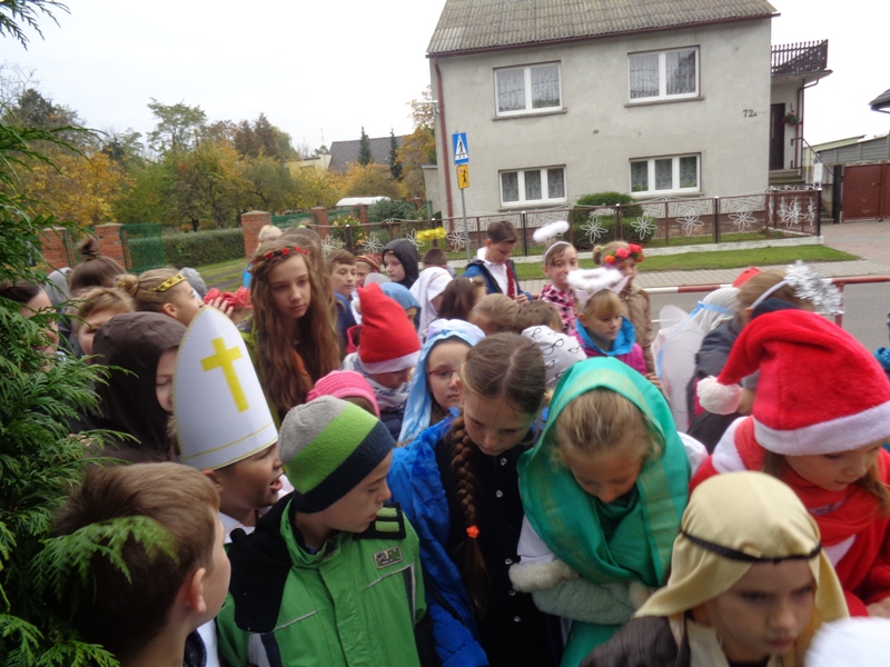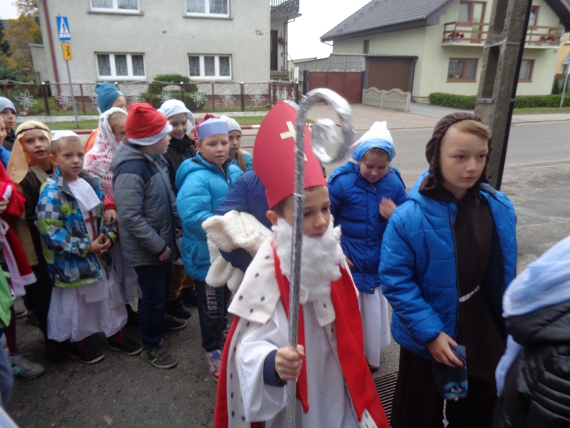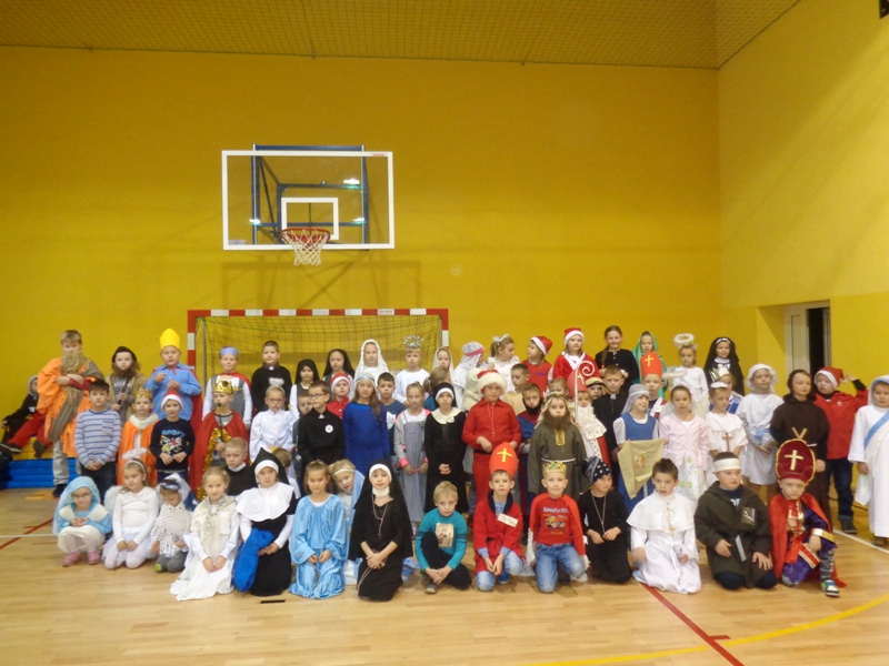 W czwartek 27 października br. w naszej szkole obchodziliśmy „Dzień Wszystkich Świętych”. Wszyscy uczniowie przebrali się za postacie świętych. Udaliśmy się na przemarsz po naszej miejscowości śpiewając radosne pieśni wychwalające Boga. Następnie udaliśmy się do Kościoła, gdzie ksiądz Krzysztof przypomniał nam w krótkim rozważaniu co to znaczy być świętym i jak w naszym codziennym życiu dążyć do świętości. Na koniec odmówiliśmy różaniec w intencji wszystkich zmarłych, zwłaszcza z naszych rodzin. Z uśmiechem na twarzy wróciliśmy do szkoły. Inicjatywa cieszyła się dużym zainteresowaniem i zaangażowaniem dzieci i rodziców, więc pewnie wpisze się na stałe w szkolny kalendarz.