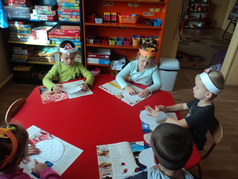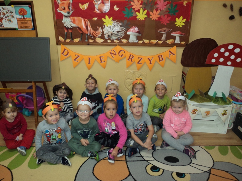 Dzieci podobnie jak sala zostały udekorowane „grzybowymi” opaskami, więc w przedszkolu roiło się od borowików, kurek oraz muchomorów. Podczas zajęć przedszkolaki z dużym zainteresowaniem oglądały zdjęcia grzybów oraz potrafiły je nazwać w sposób potoczny i wskazywały, które z nich to grzyby jadalne, a które niejadalne. Uczestnicy zajęć opowiadali o tym, z kim chodzą na grzyby, jakie grzyby zbierają i jak prawidłowo wyciągać grzyby z ziemi. Dzieci wskazywały również co może powstać z pysznych grzybów oraz śpiewały piosenkę o grzybku.