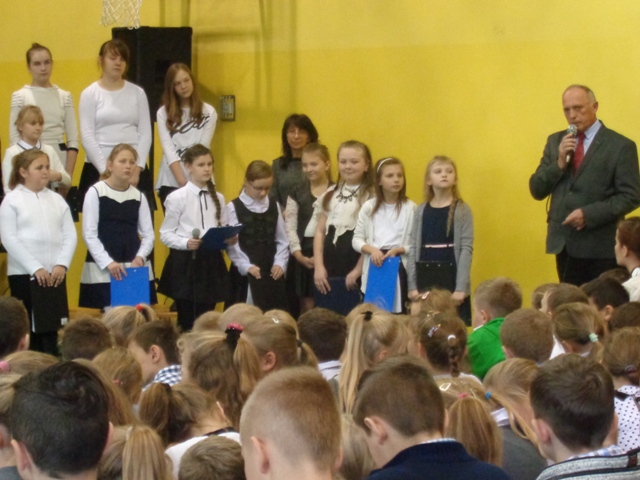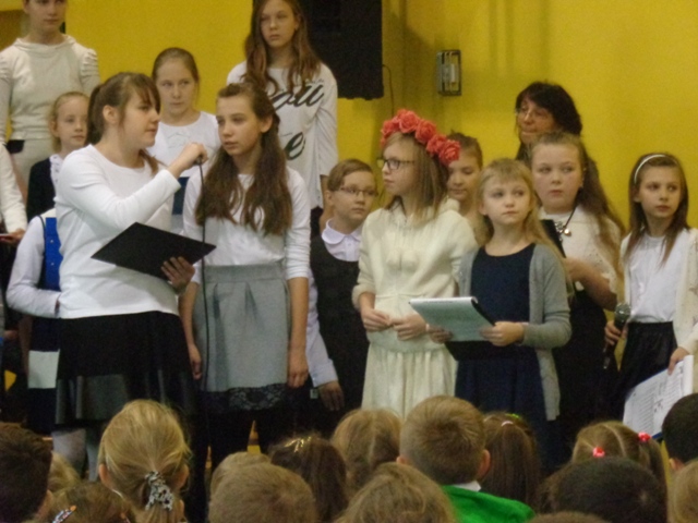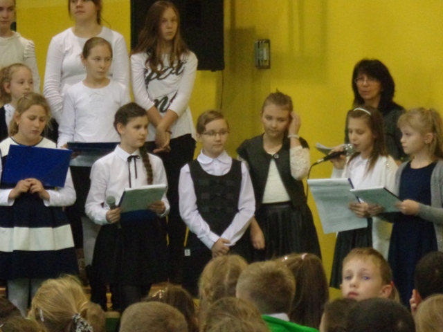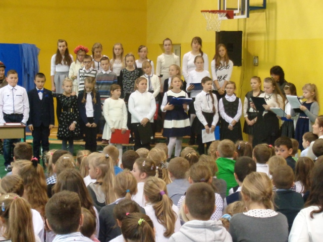 10 listopada br., tuż przed Narodowym Świętem Niepodległości, uczniowie klas IV-VI wraz z panią Mariolą Przybylską zaprosili wszystkich na uroczystą akademię. Montaż słowno - muzyczny nawiązywał do bardzo ważnych dla Polski wydarzeń sprzed 98 lat , kiedy to nasza Ojczyzna odzyskała upragnioną suwerenność. Artyści, recytując wiersze, przedstawili tragiczne losy naszej Ojczyzny i trudną drogę do wolności, a także oddali hołd tym, którzy poświęcili dla Niej własne życie. Całości dopełniły patriotyczne pieśni, które wprowadziły widownię w nastrój powagi i skłoniły do zadumy. Pan dyrektor Janusz Baszczyński podkreślił, że dzień ten jest uwieńczeniem wielu lat walki, wiary i poświęcenia naszych przodków na drodze do wolności, a my współcześni patrioci powinniśmy pamięć o nich pielęgnować.