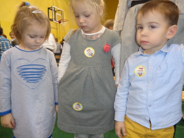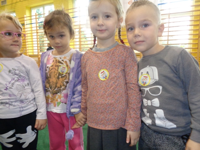 Dzieci w oddziale przedszkolnym dumnie prezentowały na swoich koszulkach naklejkę z medalem małego patrioty.