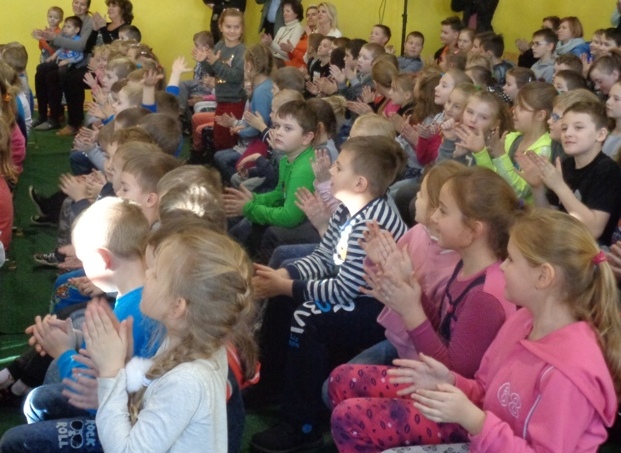 Po występie zaproszono wszystkich do konkursów, w których czekają wspaniałe nagrody. Czas mijał radośnie i niestety szybko, a dzieciom trudno było rozstać się z aktorami.