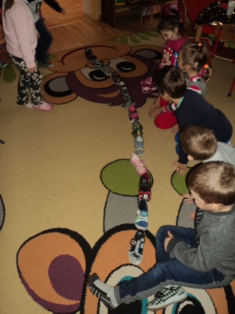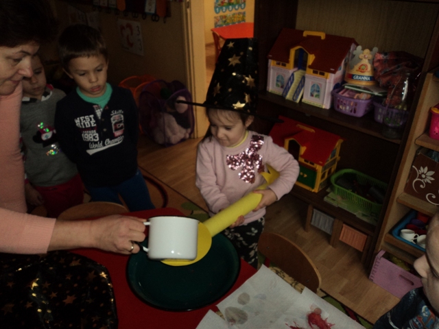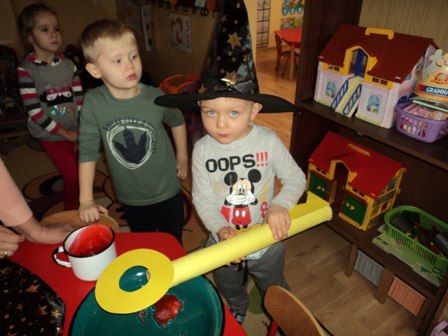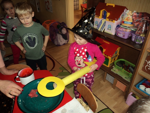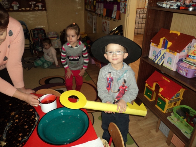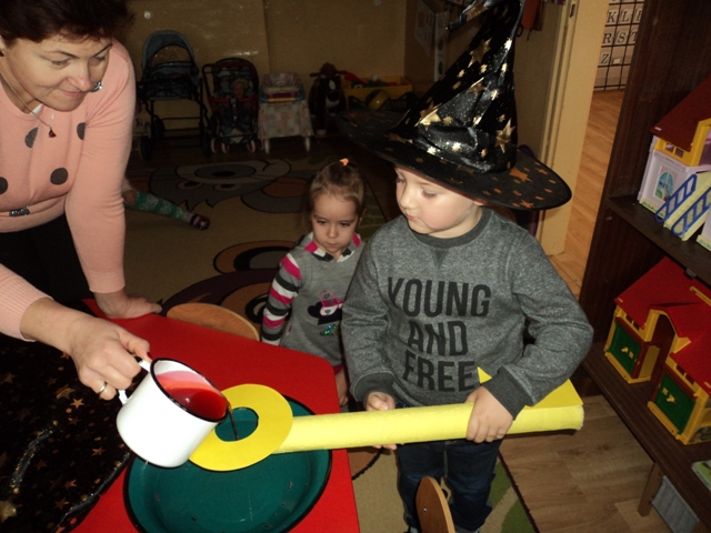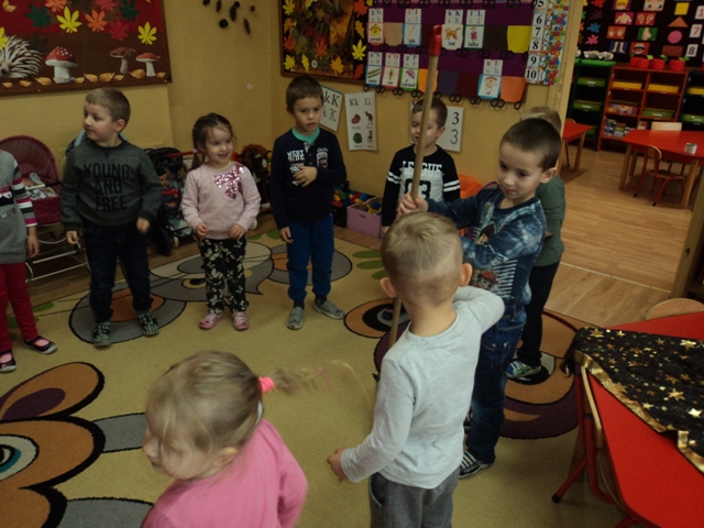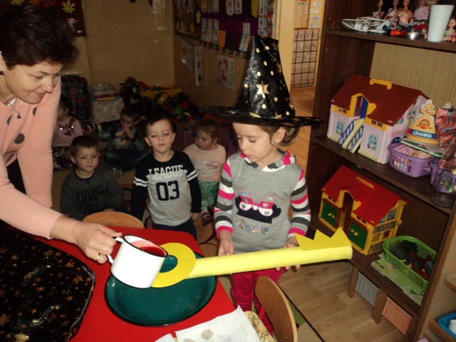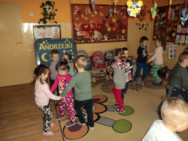 Do przedszkolaków przyleciała Czarownica. Nie po to jednak by je straszyć, ale by w andrzejkowy wieczór wywróżyć im to co je czeka w przyszłości. Dzieci z entuzjazmem uczestniczyły w zabawie razem z Czarownicą. W grupie dzieci odbyło się wielkie wróżenie z butelki, butów, kolorowych kredek oraz wrzucanych monet do miski. Odbyło się również tradycyjne lanie wosku, które sprawiło maluchom największą frajdę. Cała zabawa przeplatana była wspólnymi tańcami, tańczyliśmy nawet z nieodzownym atrybutem czarownicy, czyli z miotłą. Dzieci poznały andrzejkowe zaklęcia i głośno je w tym dniu wypowiadały.