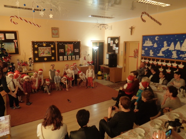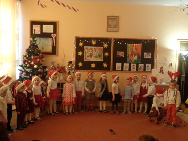 "Jak co roku o tej porze święta do nas się zbliżają..." takimi słowami rozpoczęło się spotkanie przedszkolaków przy choince. Dnia 16.12.2016r. dzieci z oddziału przedszkolnego w Mokronosie przy tej świątecznej okazji zaprezentowały zdolności artystyczne. Wiersze odnosiły się do przygotowań związanych z świętami Bożego Narodzenia. Wesoło zaśpiewały i zatańczyły do rytmu muzyki. Wspólnie z bliskimi zaśpiewano kolędy. Zaproszeni goście nagradzali małych artystów gromkimi brawami, nie zabrakło również łez wzruszenia. Po części artystycznej do dzieci przyszedł długo wyczekiwany Mikołaj. Przyniósł worek pełen prezentów dla dzieci jak i dla oddziału. W tym dniu mamy zorganizowały słodki poczęstunek dla wszystkich gości i dzieci.