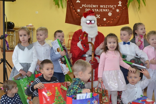 19 grudnia br. Przedszkole z Wrotkowa wraz z rodzicami zorganizowało Spotkanie Opłatkowe dla przedszkolaków, ich rodziców, pana Dyrektora Janusza Baszczyńskiego oraz zaproszonych maluchów z naszej wsi wraz z ich rodzicami. Wszyscy goście przybyli w tym dniu do Sali Wiejskiej we Wrotkowie. Przedszkolaki miały po raz pierwszy okazję wystąpić na dużej scenie. Spotkanie opłatkowe rozpoczęło się od wystawienia przez dzieci Jasełek. „Są tutaj dzieci ze świata całego. Przyszły powitać Pana Małego[…]” Betlejemski żłobek, Maryję, Św. Józefa i Jezuska tym razem odwiedziły dzieci z różnych stron świata. Na spotkanie przybyła malutka Chinka, Kowboj, dwaj Eskimosi, Indianin z Ameryki, Murzyn z Sudanu, przybył też Król oraz gromadka przedszkolaków. Wszyscy pragnęli złożyć pokłon nowo narodzonemu Jezuskowi. Nad stajenką czuwał także Aniołek. Dzieci wraz ze wsparciem gości wyśpiewały kolędy, nie zabrakło również świątecznych piosenek i wspólnego tańca. Po części artystycznej i mocy życzeń złożonych przez Pana Dyrektora, maluchy i ich wychowawczynię przyszedł czas na wizytę Św. Mikołaja, który zawitał w nasze progi i wszystkim dzieciom przyniósł prezenty. Tego dnia wszyscy podzielili się opłatkiem i wzięli udział w przepysznej słodkiej uczcie przygotowanej przez naszych kochanych rodziców. Dzień upłynął w bardzo świątecznej i miłej atmosferze.