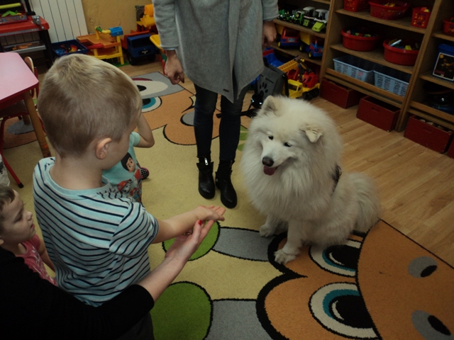 Wizyta czworonożnego przyjaciela w przedszkolu we Wrotkowie