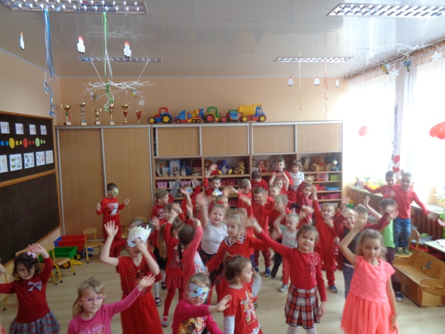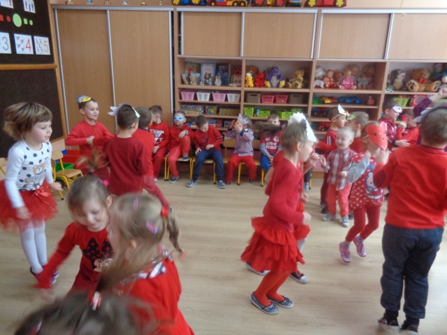 14 lutego br, z okazji Walentynek, wychowawczynie oddziałów przedszkolnych zorganizowały dla przedszkolaków "Bal Walentynkowy". Każdy maluch przyszedł do przedszkola ubrany w kolorze czerwonym. Dzień upłynął na wspólnych zabawach, tańcach i biesiadowaniu.