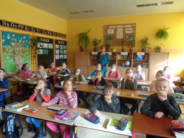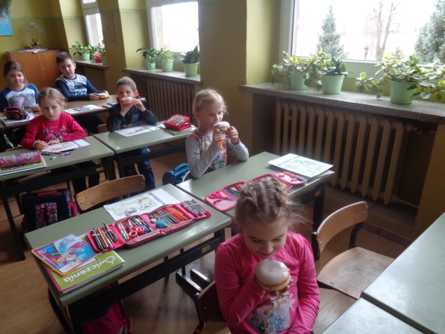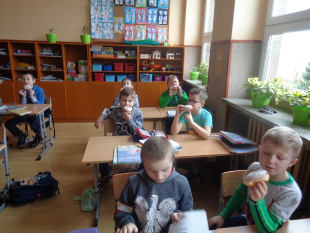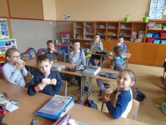 23 lutego br. w naszej szkole, dzięki uprzejmości Rady Rodziców, która ufundowała dla wszystkich uczniów i pracowników słodkiego, pysznego pączka, mogliśmy świętować tradycyjny "Tłusty czwartek" :)