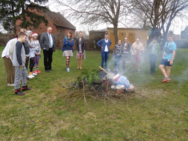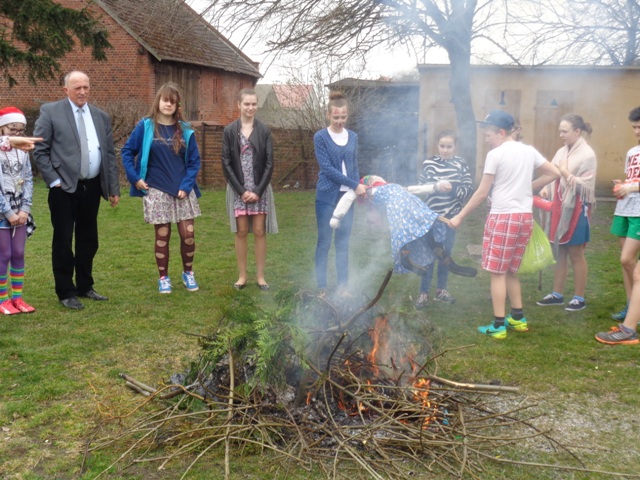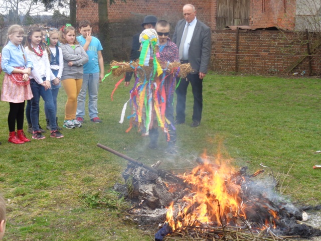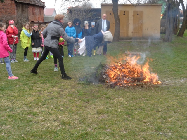 21 marca br. oficjalnie pożegnaliśmy zimę i powitaliśmy wiosnę. Tego dnia uczniowie przebrali się w kolorowe i zabawne stroje. Obchody I Dnia Wiosny rozpoczęły się od wspaniałego, wiosennego występu przedszkolaków. Dekoracja przedstawienia i przepiękne stroje nawiązywały do budzącej się do życia przyrody. Następnie Rada Rodziców zaprosiła wszystkich na kiełbaskę z grila, a każda klasa wspólnie z wychowawcą spaliła w ognisku przygotowaną Marzannę na znak przemijającej zimy.