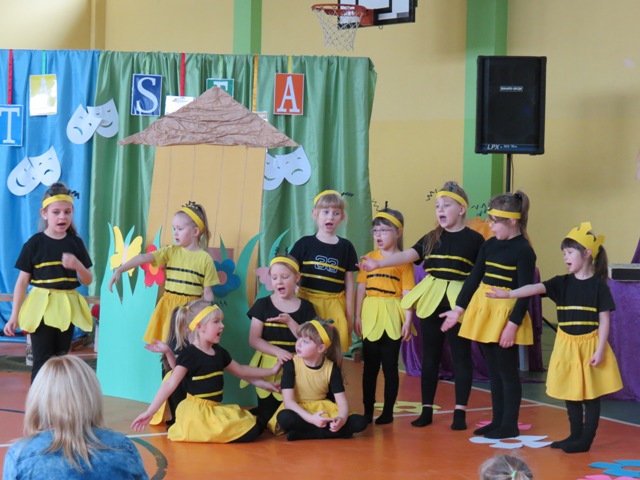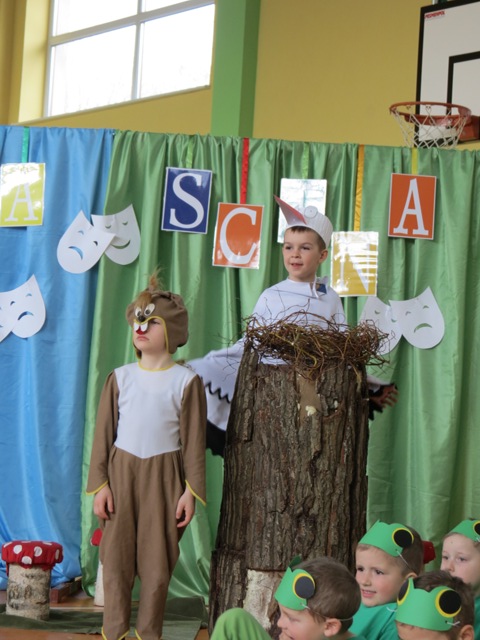 30 marca br. nasi mali aktorzy z oddziałów przedszkolnych wzięli udział w Międzyprzedszkolnym Przeglądzie Teatralnym "Złota scena", organizowanym przez Zespół Szkolno - Przedszkolny w Borzęciczkach. Grupa teatralna z Mokronosa wystąpiła z wiosennym przedstawieniem. Była to wspaniała okazja do zaprezentowania swoich umiejętności artystycznych przed szerszą publicznością. Wszyscy uczestnicy otrzymali od organizatora upominki oraz dyplomy za udział.