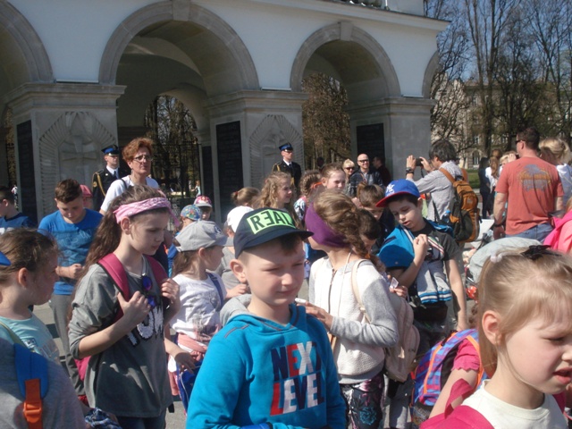 Równie ciekawy i pełen przygód był drugi dzień wycieczki. Z samego rana udaliśmy się na cmentarz Stare Powązki. Z należytą powagą i w skupieniu słuchaliśmy opowiadań pilota wycieczki o historii tego miejsca i odwiedziliśmy groby znanych Polaków. Mogliśmy też z bliska zobaczyć katakumby oraz kolumbarium. Stamtąd pojechaliśmy do centrum, by po raz pierwszy w życiu odbyć podróż koleją podziemną; metro zrobiło na nas ogromne wrażenie. W samo południe byliśmy świadkami uroczystej odprawy wart przed Grobem Nieznanego Żołnierza. Po południu zwiedziliśmy Zamek Królewski i obejrzeliśmy film o historii Warszawy. Weszliśmy też na dach Biblioteki Uniwersyteckiej, by podziwiać panoramę miasta z ogrodów dachowych. Ponieważ pogoda zachęcała do spacerów, po obiedzie i lodach udaliśmy się na spacer po mieście. Pomnik Małego Powstańca, Kolumna Zygmunta, kamieniczki na Starym Rynku, pomnik Warszawskiej Syrenki – to tylko niektóre punkty na trasie naszego spaceru.