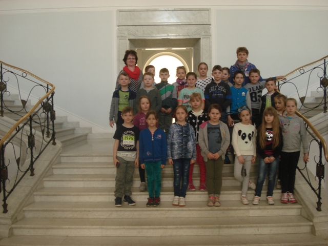 Ostatniego dnia wycieczki udaliśmy się do gmachu Sejmu RP, by naocznie zobaczyć, gdzie obraduje polski parlament. Z kolei w Łazienkach Królewskich oczarował nas pałac na wodzie i pomnik F. Chopina. W Starej Pomarańczarni uczestniczyliśmy w lekcji muzealnej i zajęciach najstarszego polskiego teatru. Uwieńczeniem podróży do stolicy był wjazd na 30 piętro Pałacu Kultury i Nauki, skąd mogliśmy podziwiać panoramę całej Warszawy i okolicy. Po obiedzie w Złotych Tarasach udaliśmy się w drogę powrotną, by późnym wieczorem rzucić się w objęcia stęsknionych rodziców.