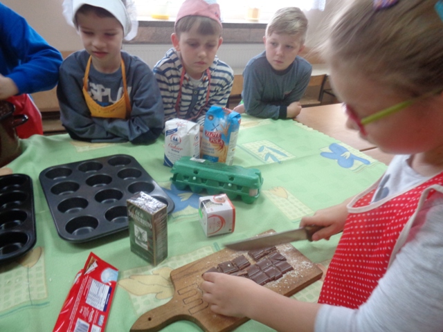 Święta Wielkanocne są bardzo radosnym czasem, na który z wytęsknieniem oczekują zarówno dzieci jak i dorośli. Są to święta rodzinne, pełne tradycji i zwyczajów, które chcemy przekazywać młodszym pokoleniom. Tuż przed Wielkanocą, i w naszej szkole nadszedł czas świątecznych przygotowań i dekoracji. Podczas zajęć bibliotechnych dzieci zostały zapoznane z tradycjami Świąt Wielkanocnych. Wiedzą już, iż symbolem tych wiosennych świąt jest m.in. jajko. W dalszej części lekcji odbyły się nietypowe warsztaty kulinarne, podczas których uczniowie klasy II upiekli wielkanocne babeczki oraz wykonali pracę plastyczną. Było twórczo, kolorowo, radośnie i pysznie.