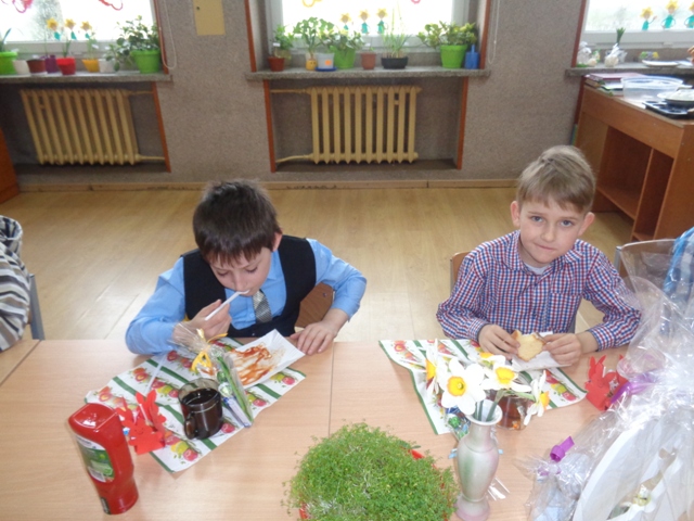 W środę drugoklasiści zasiedli przy wspólnym, wielkanocnym stole, zajadając świąteczne przysmaki.