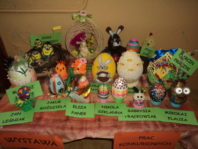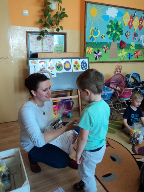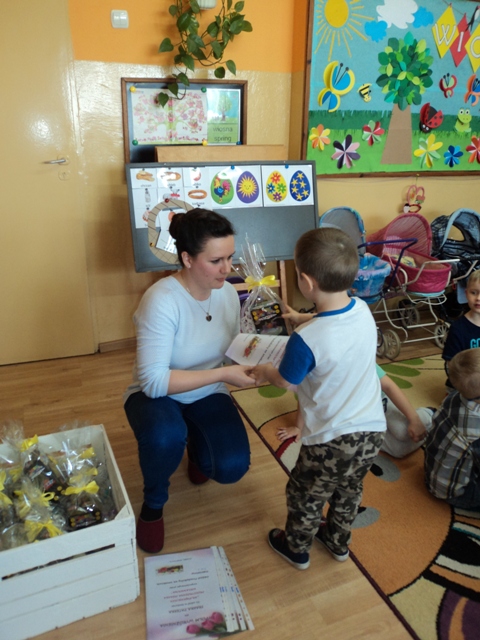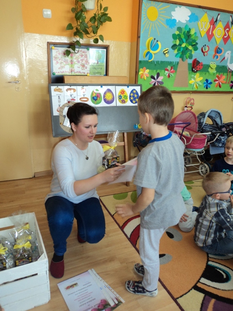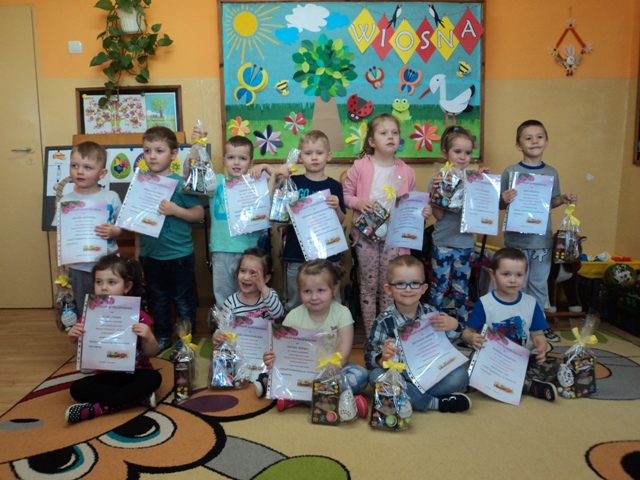 Podczas wspólnego spotkania była również okazja do ogłoszenia wyników konkursu „NAJPIĘKNIEJSZA PRZESTRZENNA PISANKA WIELKANOCNA”, organizowanego przez przedszkole. Pisanki były tak pięknie wykonane, pomysłowe i oryginalne dlatego wszystkie dzieci otrzymały dyplomy wyróżnienia oraz nagrody za swą pracę.