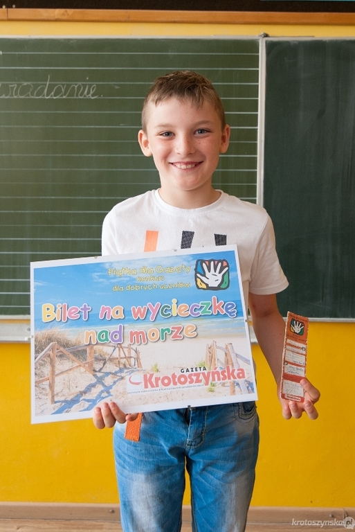 Szczęśliwy kupon Macieja Gawrońskiego z klasy IIIA został wylosowany podczas finału konkursu "Piątka z Gazetą". Tym samym Maciej wraz z całą klasą pojadą na dwudniową wycieczkę nad morze ufundowaną przez Gazetę Krotoszyńską. Tegoroczne losowanie jest kolejnym szczęśliwym dla naszej szkoły.