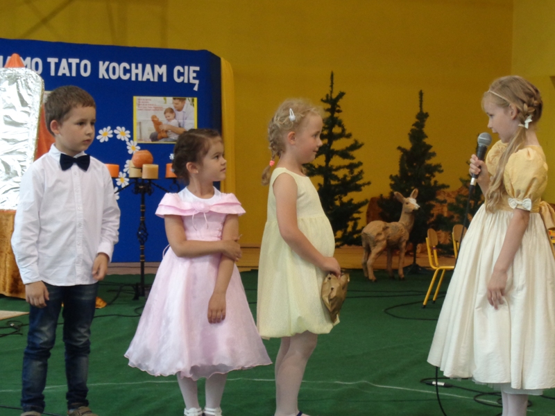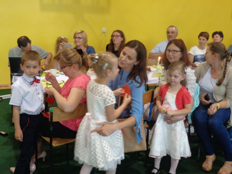 6 czerwca br. dzieci z oddziałów przedszkolnych zaprosiły swoich rodziców na uroczystość z okazji Dnia Mamy i Taty. Na początku wystąpienia dzieci w podziękowaniu za wychowanie, miłość i opiekę wyrecytowały dla swoich rodziców wspaniałe wiersze oraz zaśpiewały wesołe piosenki. Następnie w przepięknej scenerii, przedstawiły widowni inscenizaję bajki "Królewna Śnieżka", a na koniec przekazały mamie i tacie symboliczne "serduszkowe" prezenty. Rodzice nie kryli wzruszenia i radości. Uroczystość zakończyła się wspólnym biesiadowaniem przy kawie.