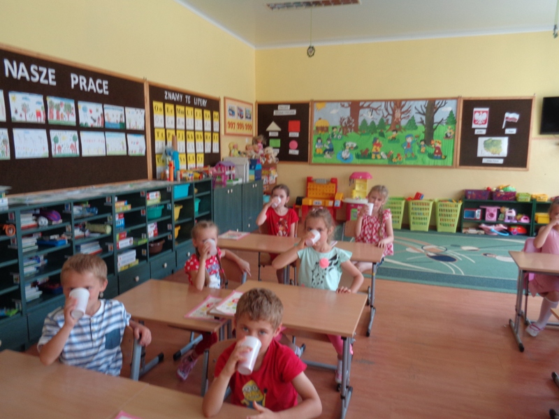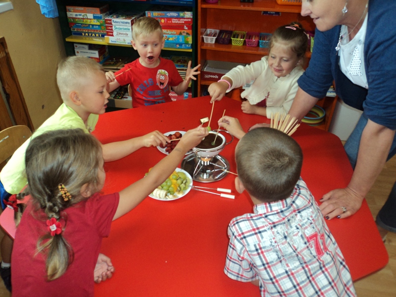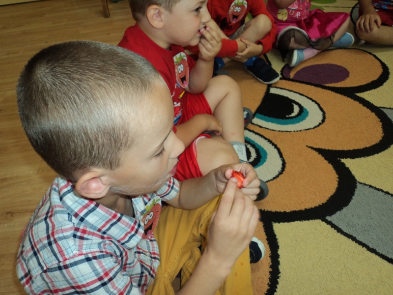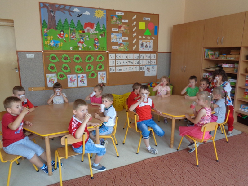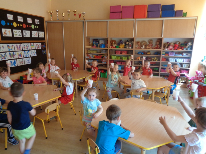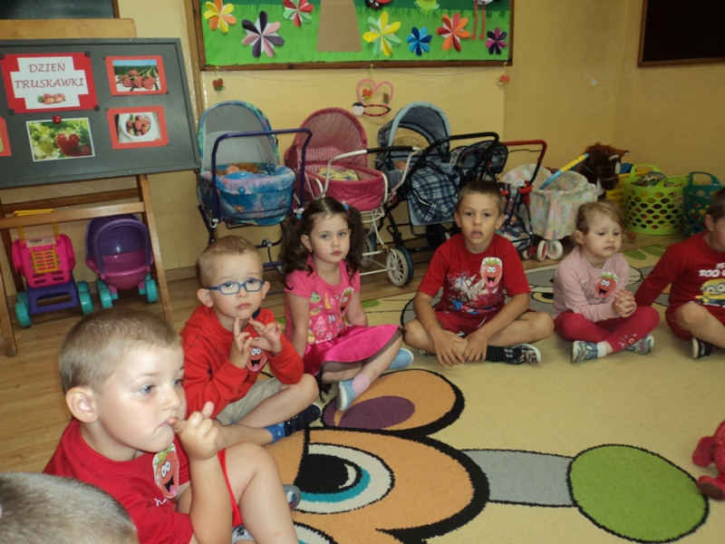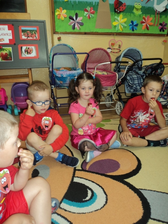 W mokronoskim przedszkolu tuż przed wakacjami, dzieci również zajadały się pysznymi truskawkami. Tego dnia przyszły do przedszkola ubrane w czerwonym kolorze. Wychowawczynie grup przygotowały zdrowe, truskawkowe kokatajle dla najmłodszych, a wszyscy nie mogli doczekać się degustacji. Przy tej okazji dzieci utrwaliły sobie jak bardzo zdrowe są owoce, ile mają w sobie witamin i potrzebne są w życiu każdego człowieka.
