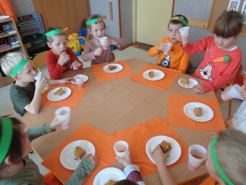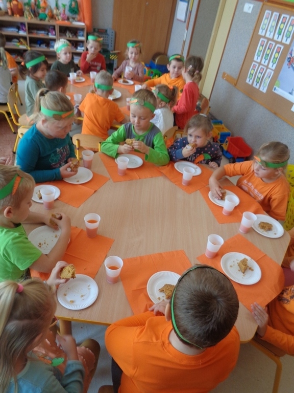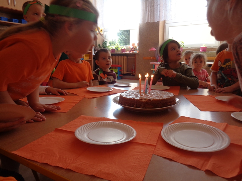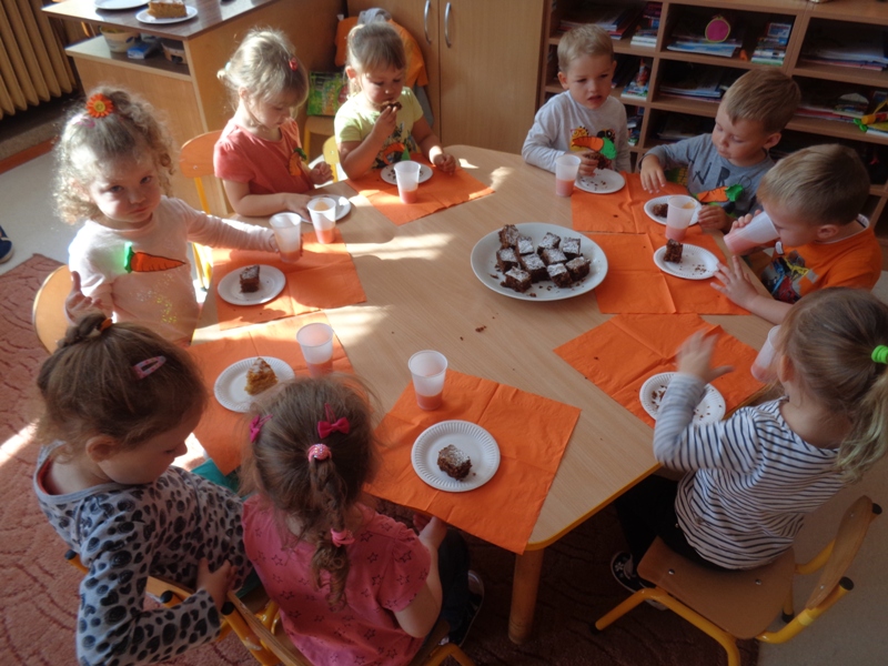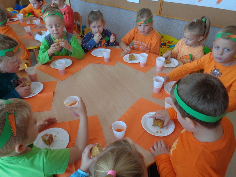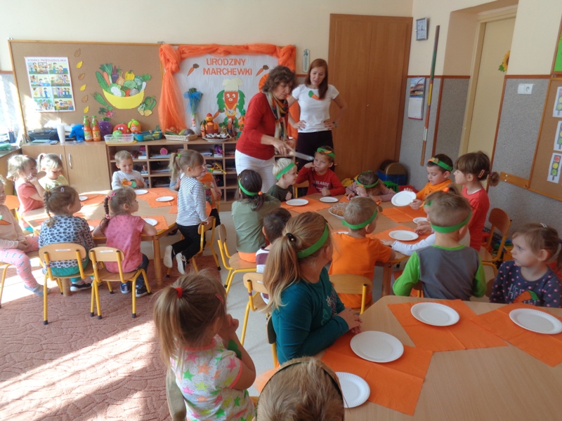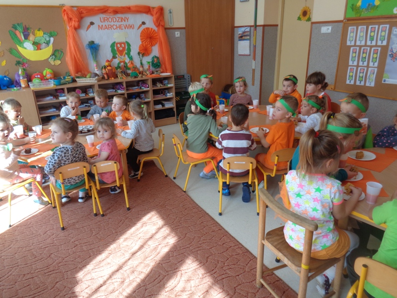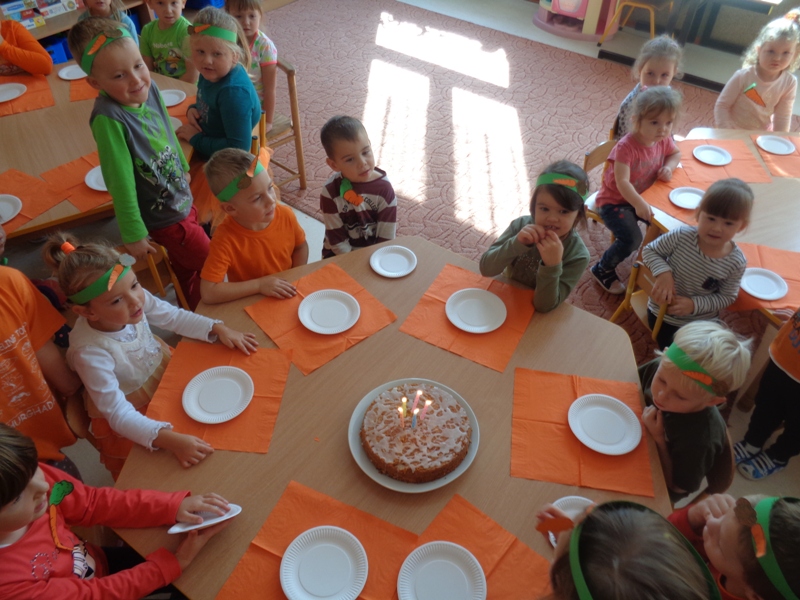 W środę 27 września br. w przedszkolu było zdrowo, pomarańczowo i marchewkowo. 3-4 i 5 latki w tym dniu świętowały "Urodziny Marchewki". W ciągu całego dnia odbyły się zabawy, oczywiście z marchewką w roli głównej. Dzieci poznały odżywcze wartości tego warzywa. Nie zabrakło również pysznego ciasta marchewkowego i dmuchania urodzinowych świeczek.