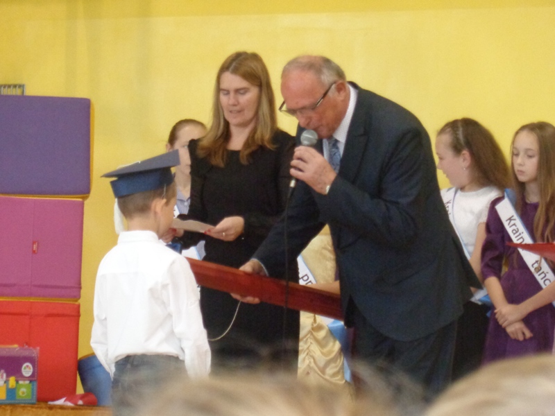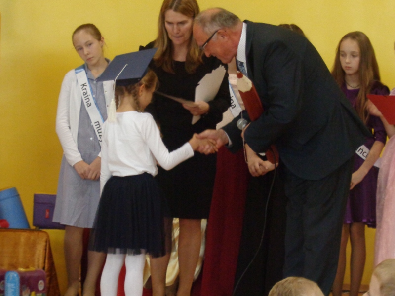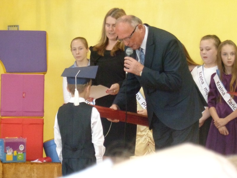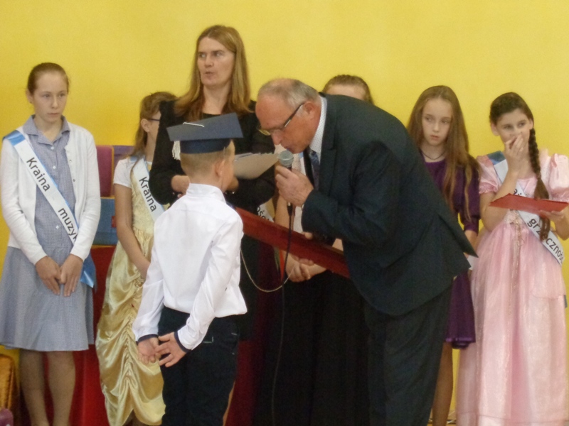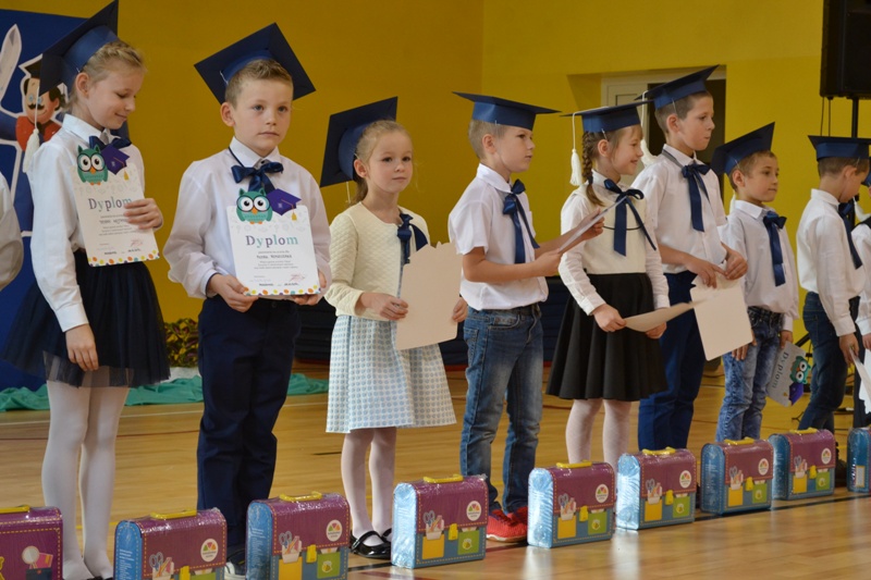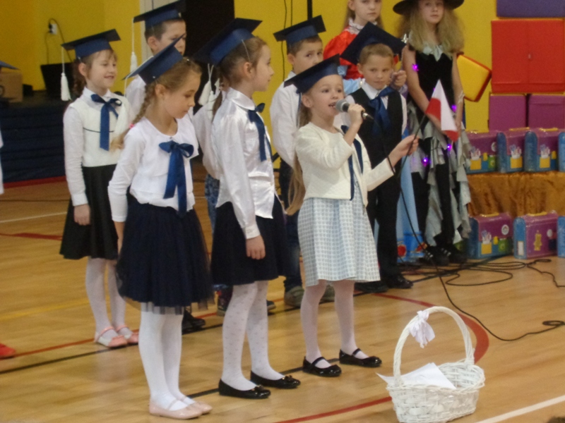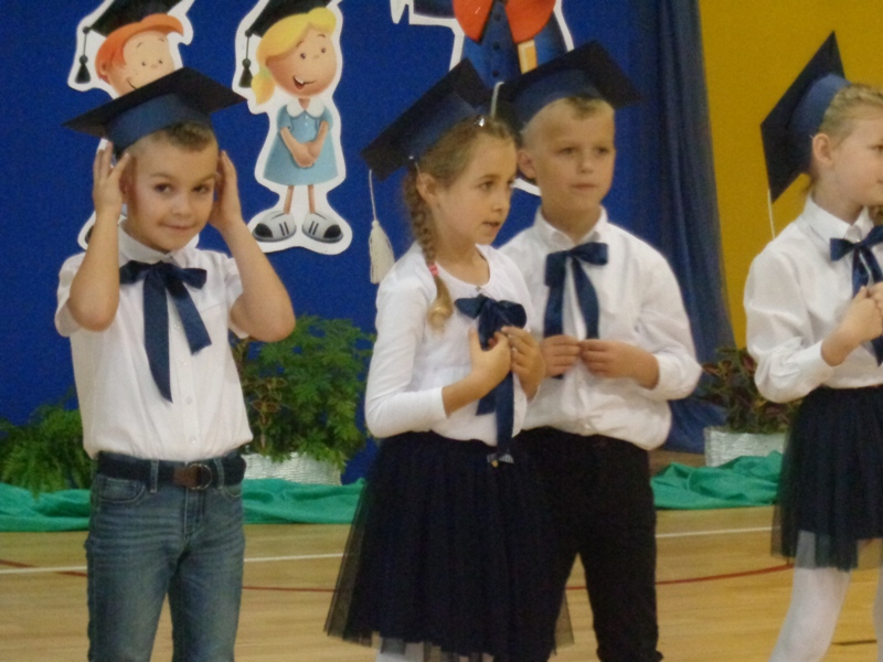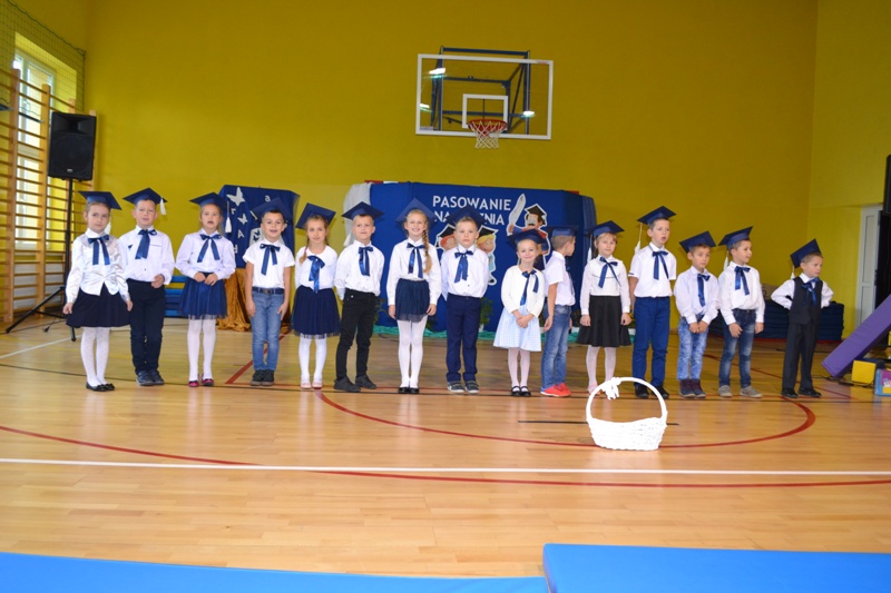 Pierwszoklasiści ze Szkoły Podstawowej w Mokronosie są już pełnoprawnymi uczniami. 26 października br. odbyło się uroczyste "Pasowanie na ucznia". To był wyjątkowy dzień. Pasowanie to bardzo ważna uroczystość w naszym szkolnym kalendarzu. Zanim dzieci zostały przyjęte do grona społeczności szkolnej przedstawiły to, czego do tej pory nauczyły się w szkole. Gotowi, odświętnie ubrani i bardzo przejęci przystąpili do zaprezentowania swoich umiejętności. Zadaniami uczniów było m.in. zaśpiewanie piosenek, recytacja i taniec poloneza. Następnie w niezwykle podniosłej atmosferze, przed pocztem sztandarowym pierwszoklasiści ślubowali być dobrymi uczniami i Polakami, swym zachowaniem i nauką sprawiać radość rodzicom i nauczycielom. Po złożeniu ślubowania pan Dyrektor Janusz Baszczyński dokonał symbolicznego pasowania wypowiadając zdanie "Pasuję Cię na ucznia/uczennicę Szkoły Podstawowej w Mokronosie" i dotknął ołówkiem jak czarodziejską różczką ramiona pierwszaka, a wychowawczyni pani Mariola Górak wręczyła im dypolomy pasowania na ucznia. Pan dyrektor pogratulował dzieciom wspaniałych umięjętności i wręczył niespodzianki "Kuferki", ufundowane przez rodziców. Po uroczystości dzieci wraz zaproszonymi goścmi udały się na słodki poczęstunek. Rodzicom gratulujemy tak wspaniałych pociech, a Pierwszoklasistom życzymy wielu sukcesów w nauce w naszej szkole.